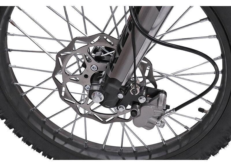 В основе — двигатель ZS172FMM объёмом 250 см3 с воздушным охлаждением. Такая компоновка проще в обслуживании, а электростарт помогает быстрее запускать мотоцикл в тренировочном режиме и при частых остановках.