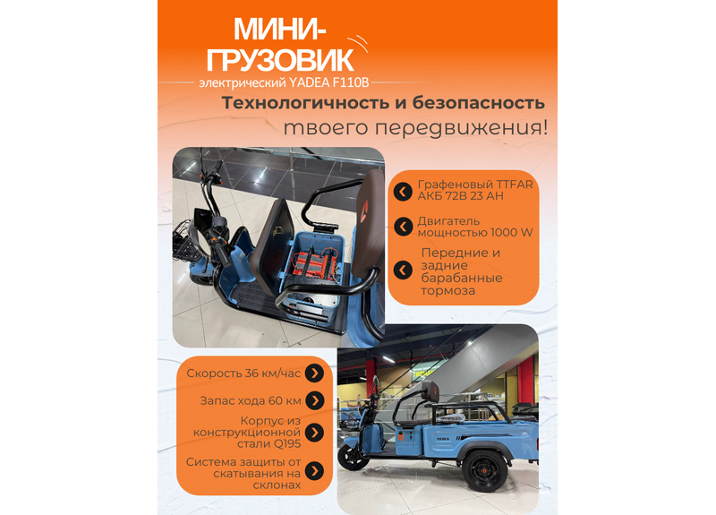 Отзывы на ЭЛЕКТРИЧЕСКИЙ МИНИ-ГРУЗОВИК YADEA F110B от реальных покупателей steelracing.ru