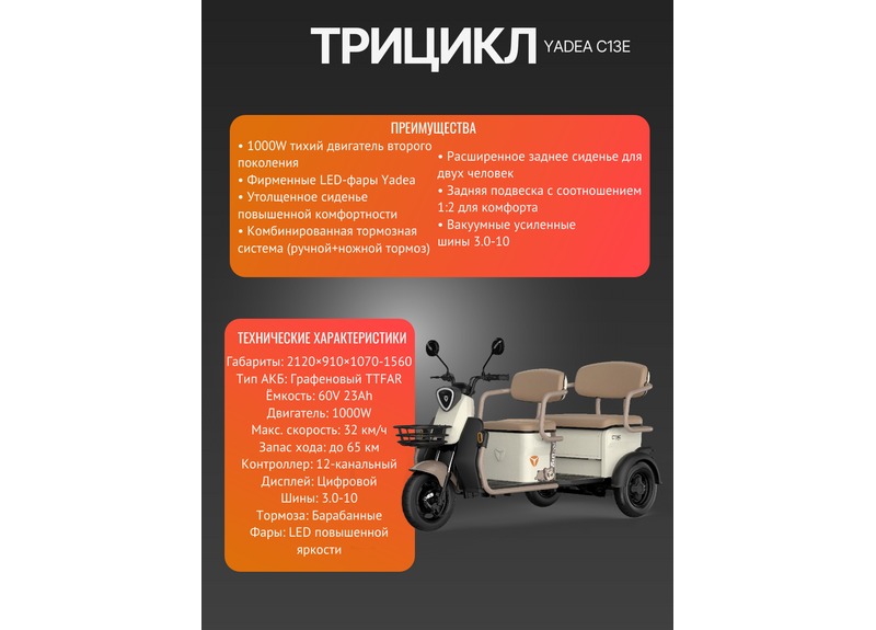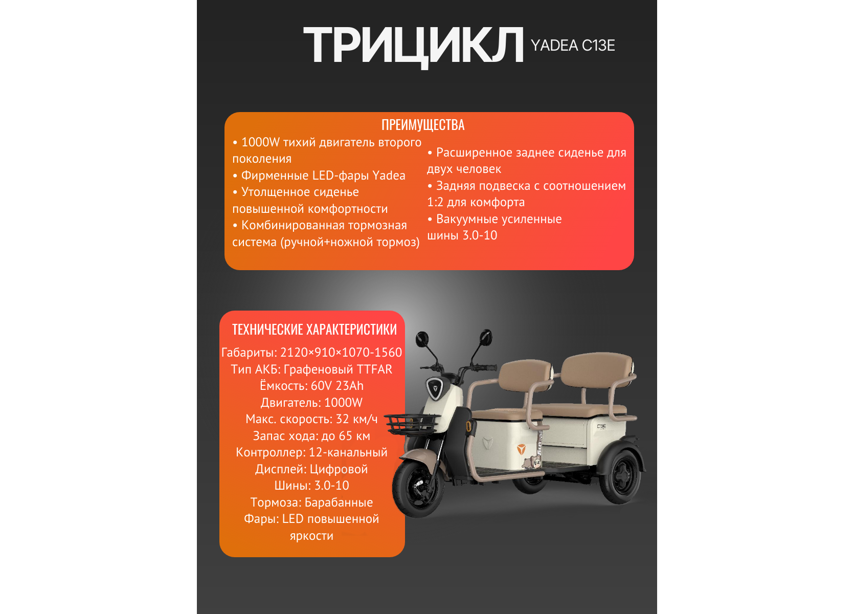 ЭЛЕКТРИЧЕСКИЙ ПАССАЖИРСКИЙ ТРИЦИКЛ YADEA C13E