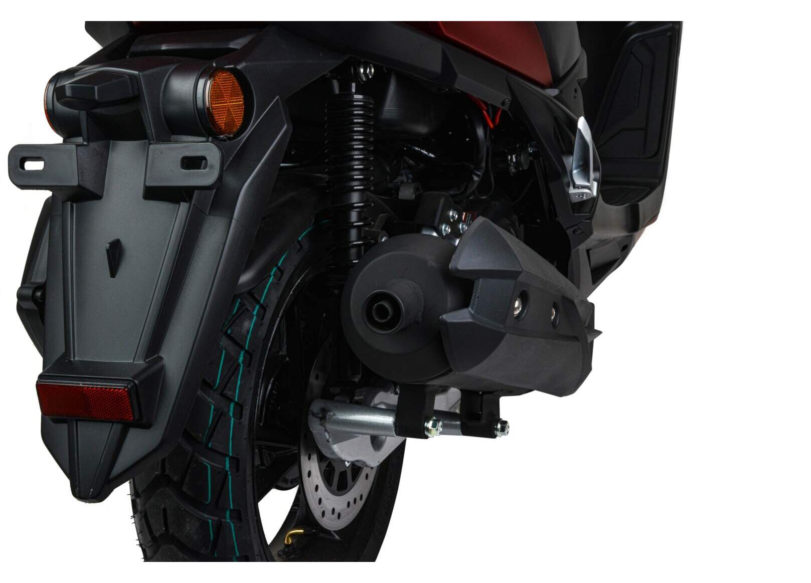 Скутер Motoland VULKAN 150 рассчитан на тех, кому нужен комфортный «макси» формат для ежедневных городских маршрутов и более длинных перегонов. Прямая посадка, колесная база 1360 мм и колёса 13" помогают держать курс стабильнее на скорости и спокойнее проходить неровности, а высота по седлу 770 мм подходит широкому кругу райдеров.