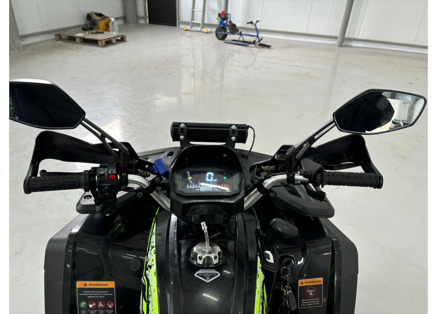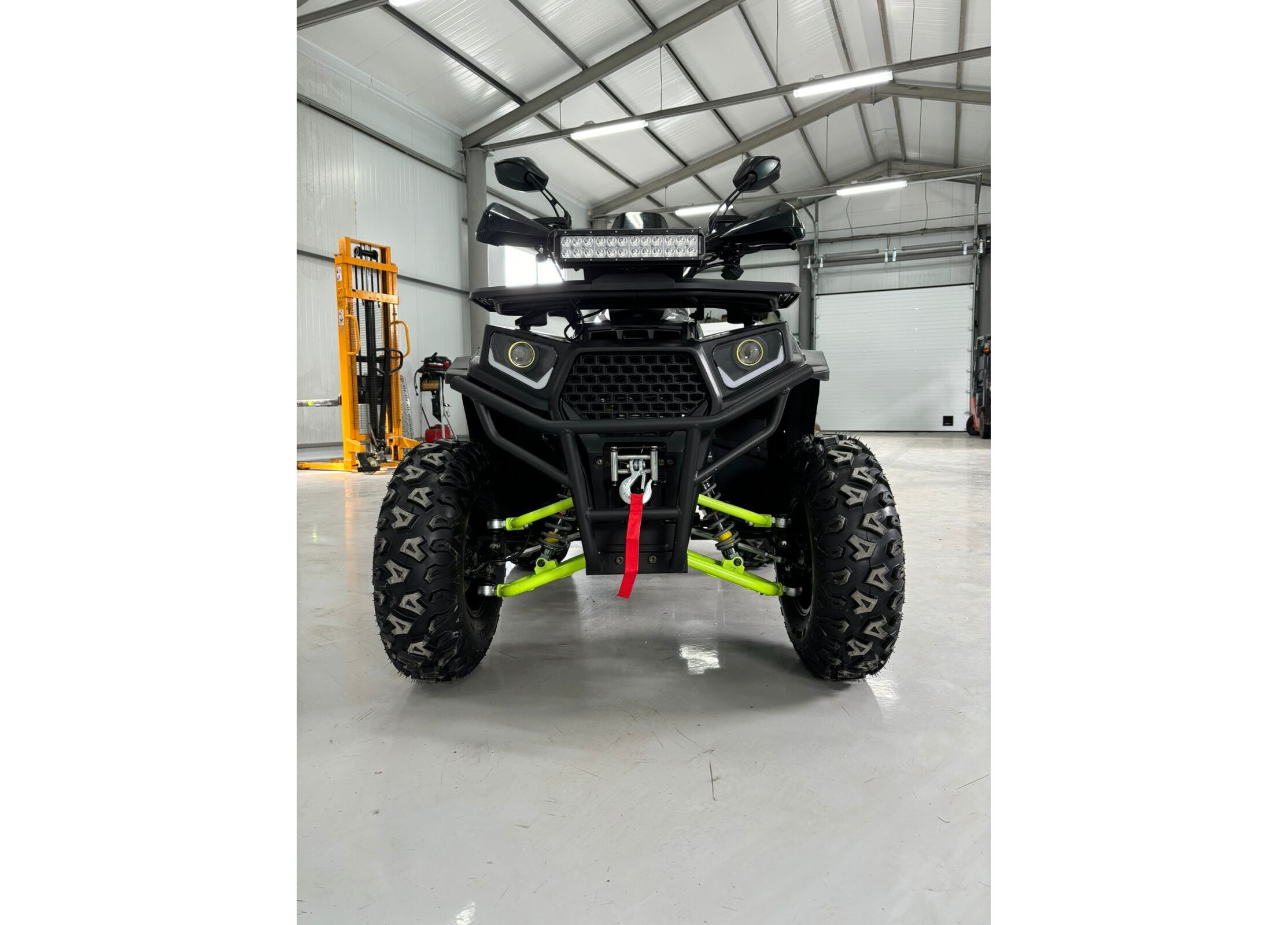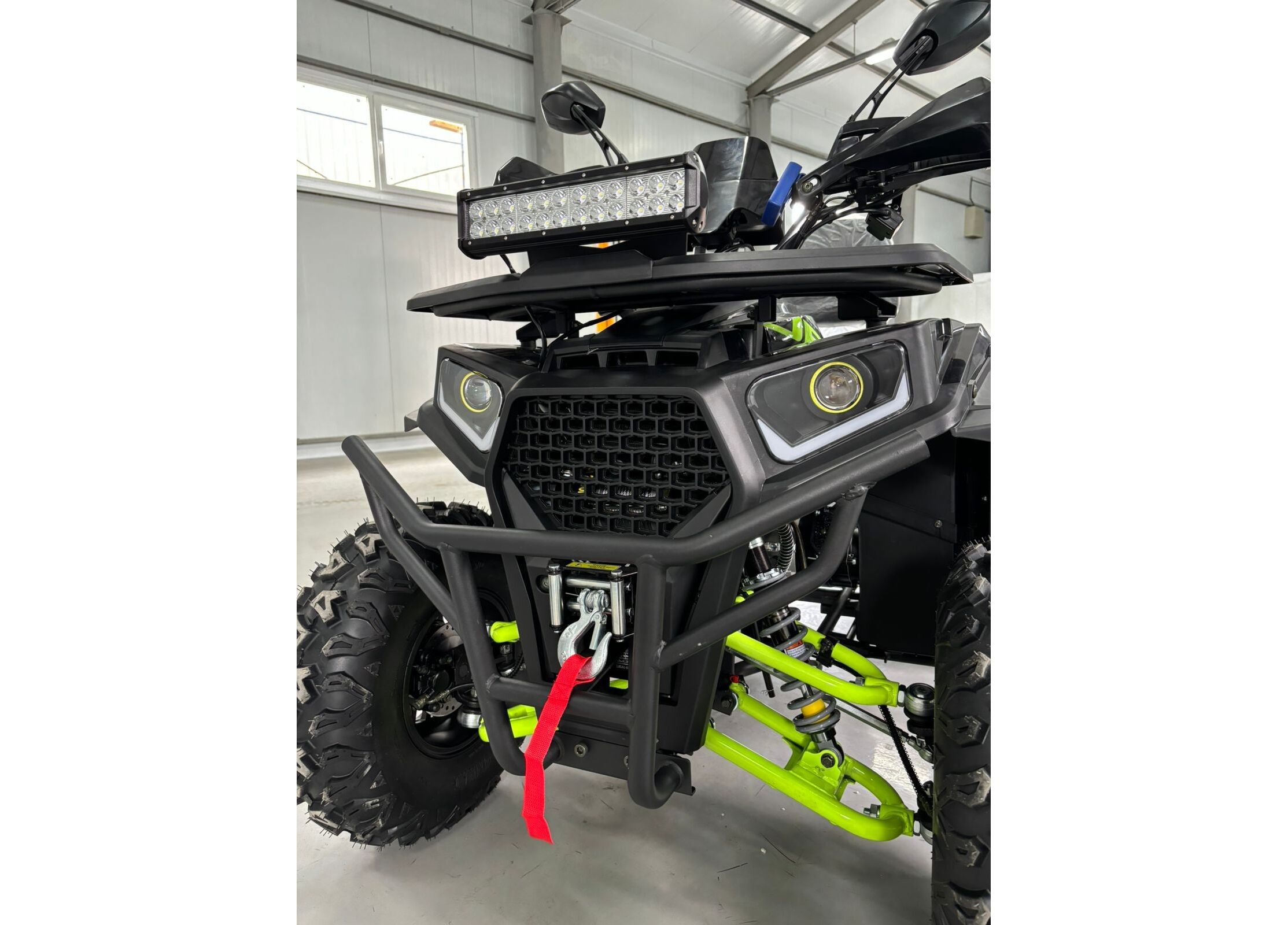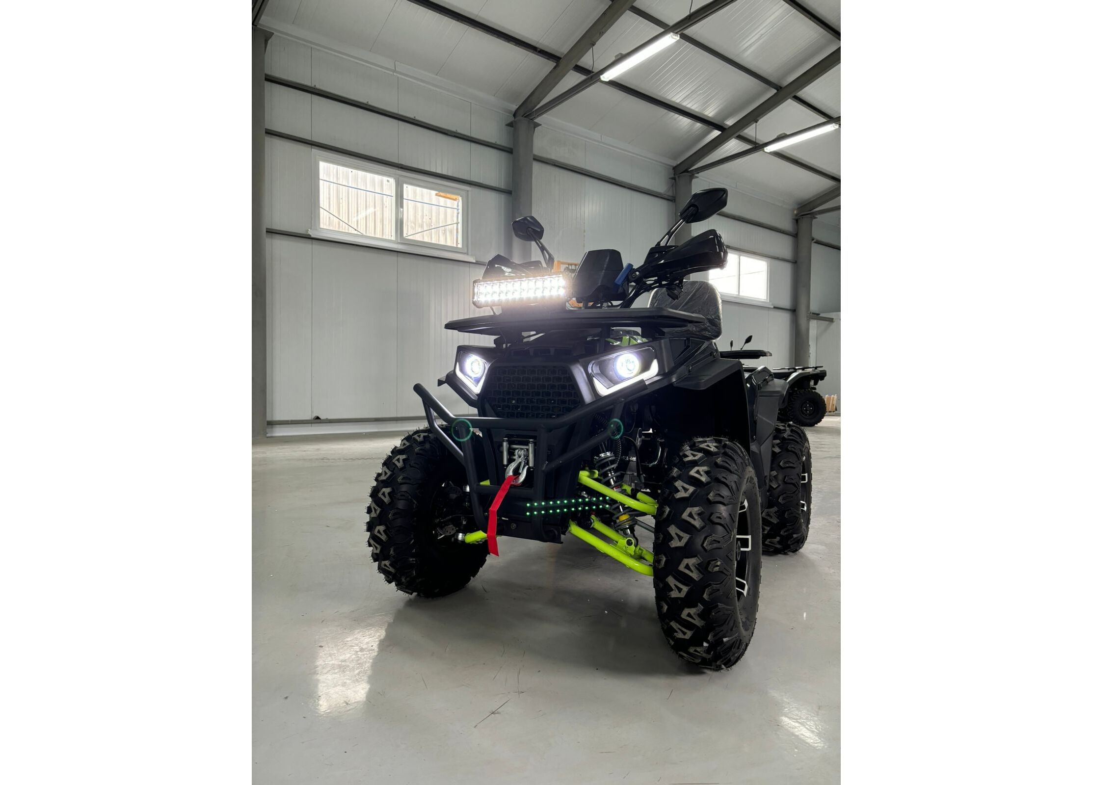Практичность дополняют металлические багажники спереди и сзади, спинка для пассажира, защита рук, зеркала заднего вида, лебедка с кнопочным управлением и фаркоп. Объём топливного бака составляет 7,8 литра, максимальная грузоподъемность — до 200 кг. Габариты квадроцикла — 1840 x 1100 x 1160 мм при высоте по седлу 900 мм и весе 195 кг, что делает его удобным как для отдыха, так и для работы.