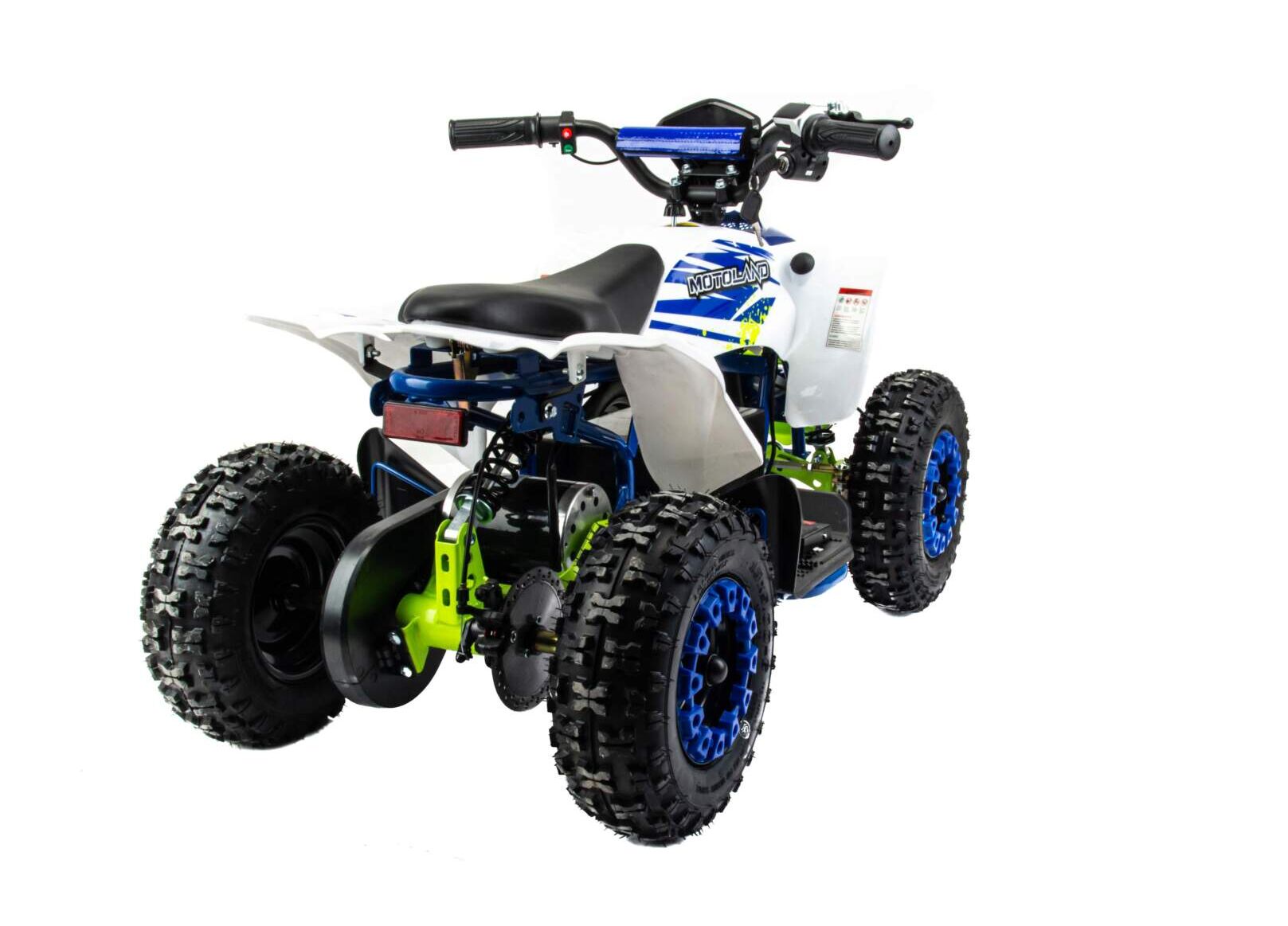 ATV E010 — детский электрический квадроцикл-игрушка для возраста 3–7 лет. Он рассчитан на обучение: скорость можно ограничивать и повышать по мере того, как ребёнок привыкает к технике.