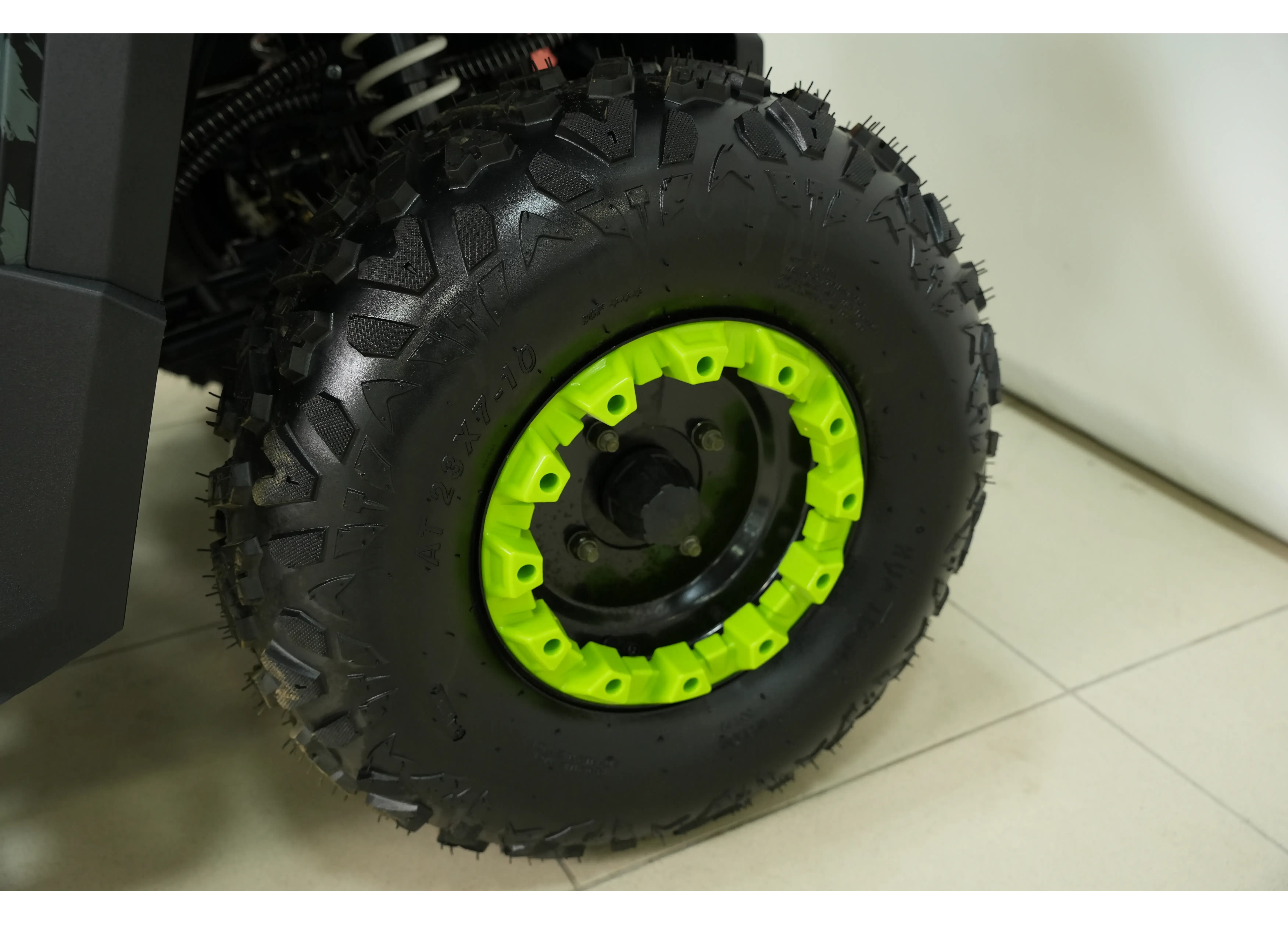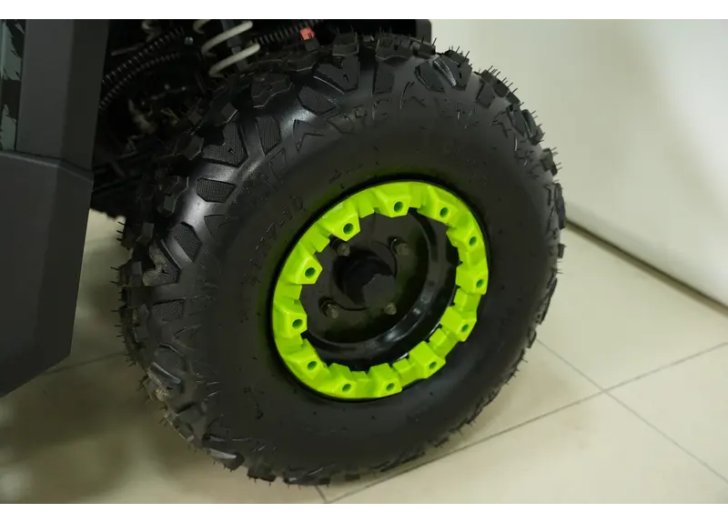 - Шины: Внедорожные с развитыми грунтозацепами