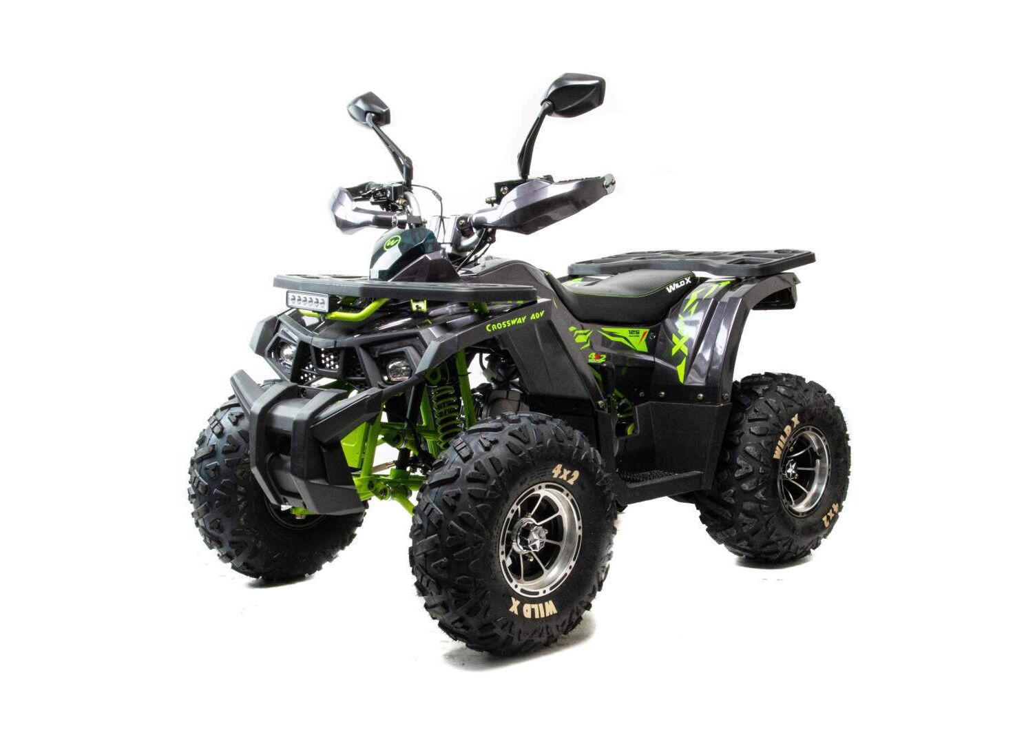 - Колеса 8" с внедорожной резиной (размер: 19x7xR8 / 18x9.5xR8)