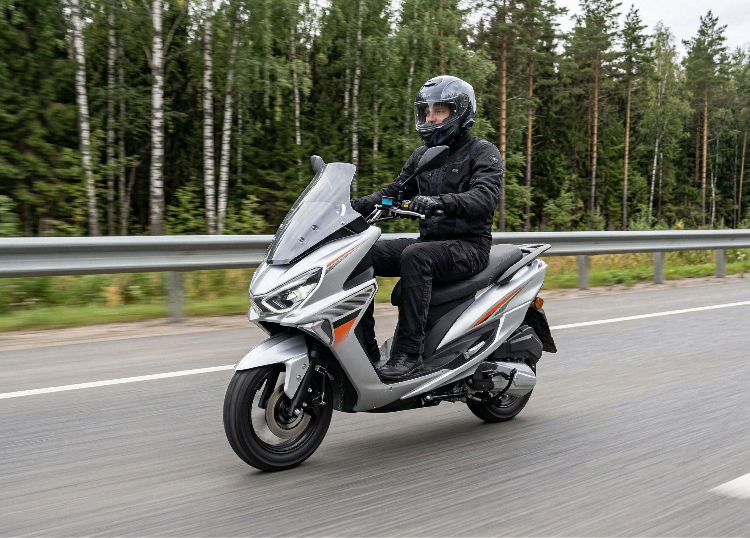 Для высоких водителей важна геометрия: GALAXY, как и более крупные модели, подходит людям выше 180 см, а ветровик направляет поток воздуха выше шлема — это снижает шум на скорости и добавляет защиты от ветра. Ровный пол помогает перевозить мелкий груз прямо на площадке, не занимая сиденье.
