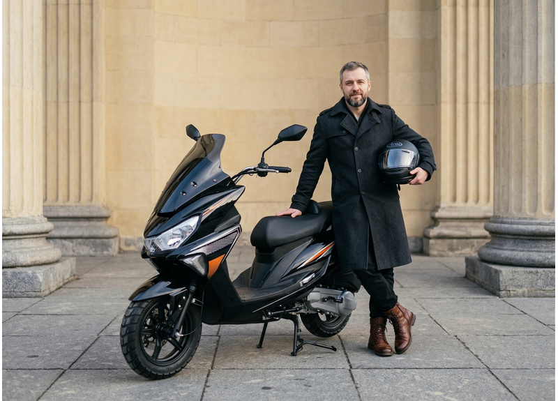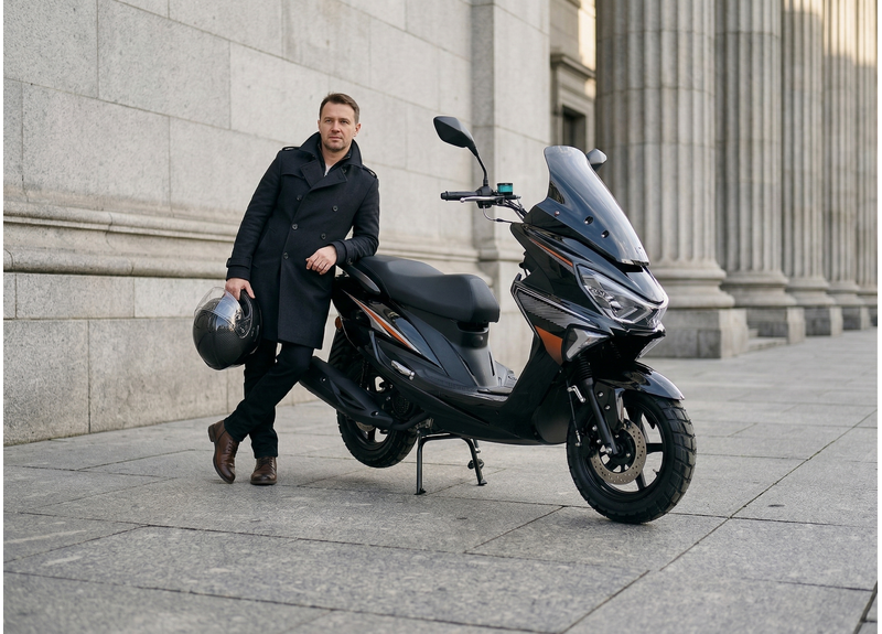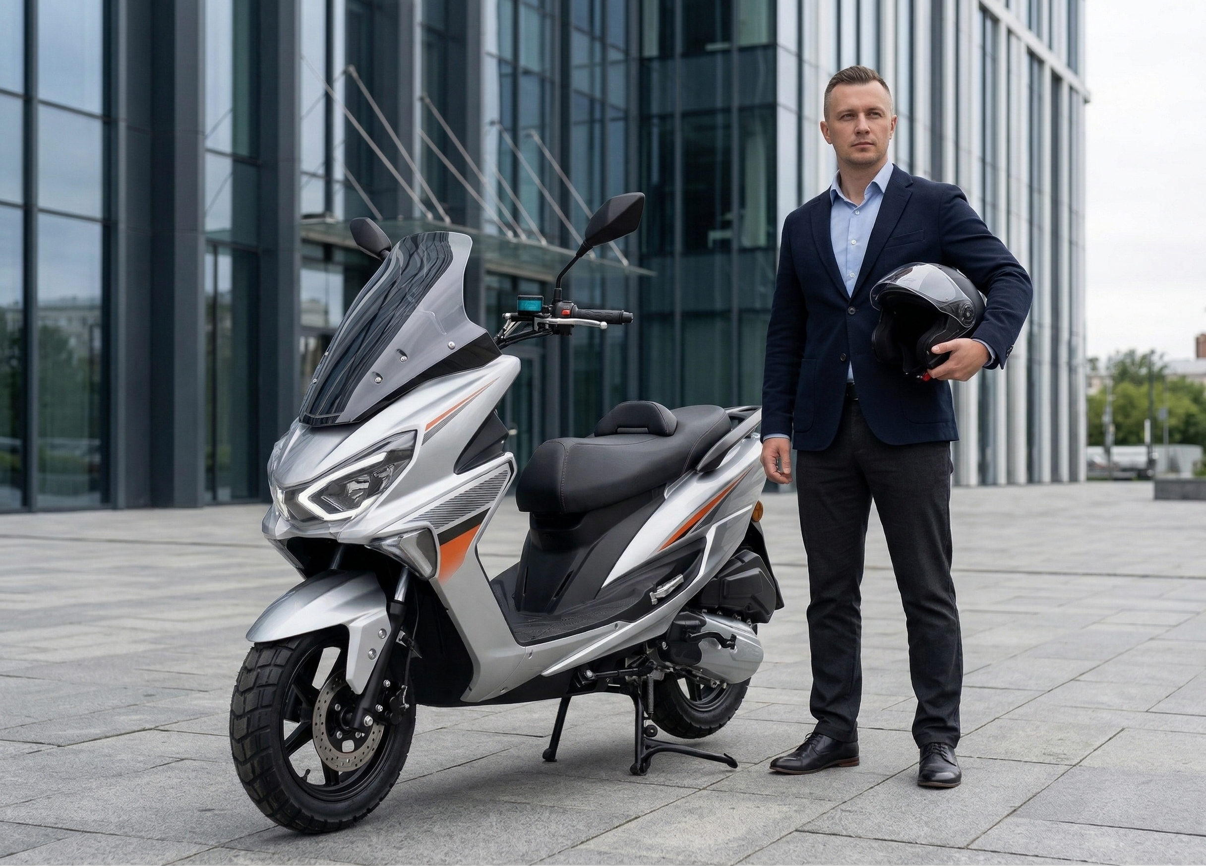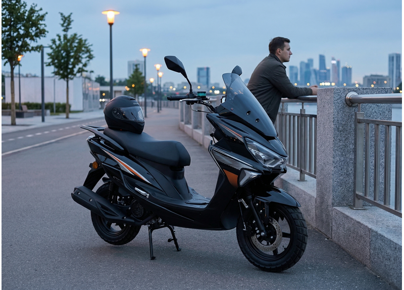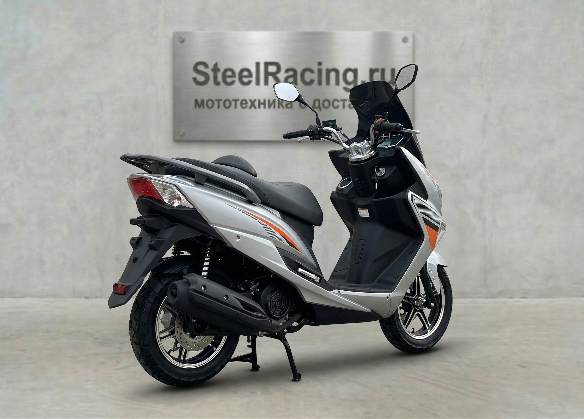 Скутер GALAXY рассчитан на повседневные поездки по городу и пригородам, когда важны комфортная посадка и стабильность на ходу. Модель заметно крупнее бюджетных скутеров на колёсах 10", а колёса 12"/12" (120/70-12 спереди и сзади) дают более уверенное поведение на неровном асфальте и при проезде стыков.