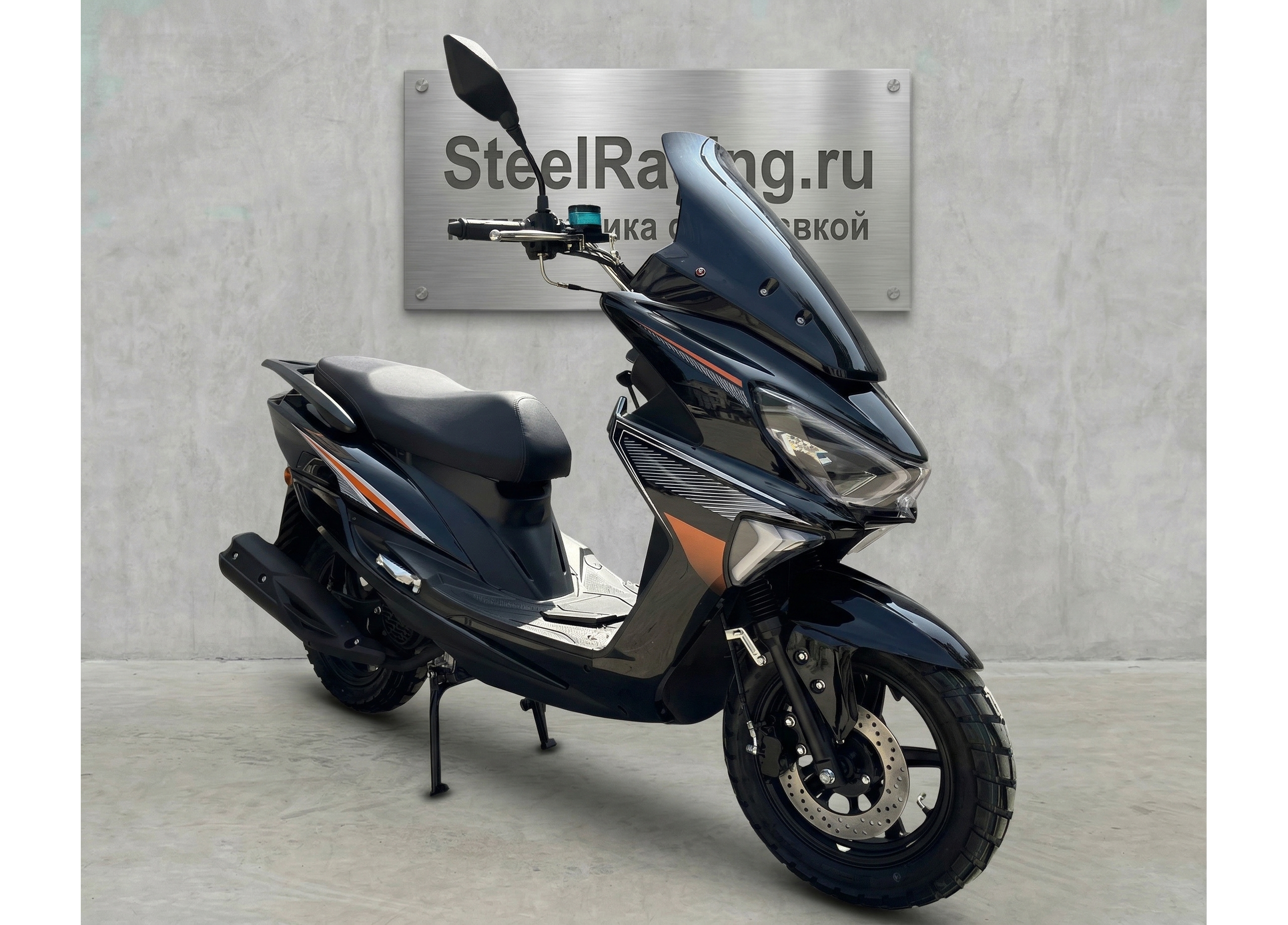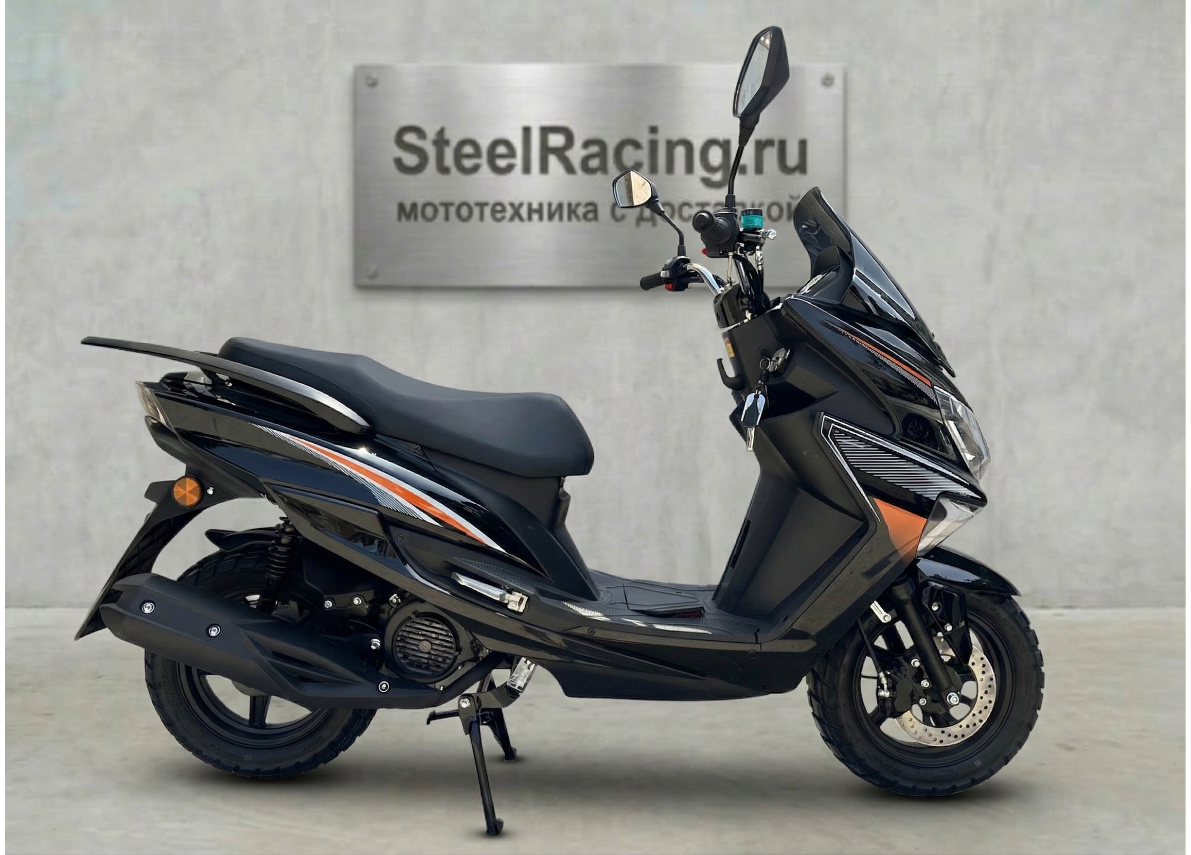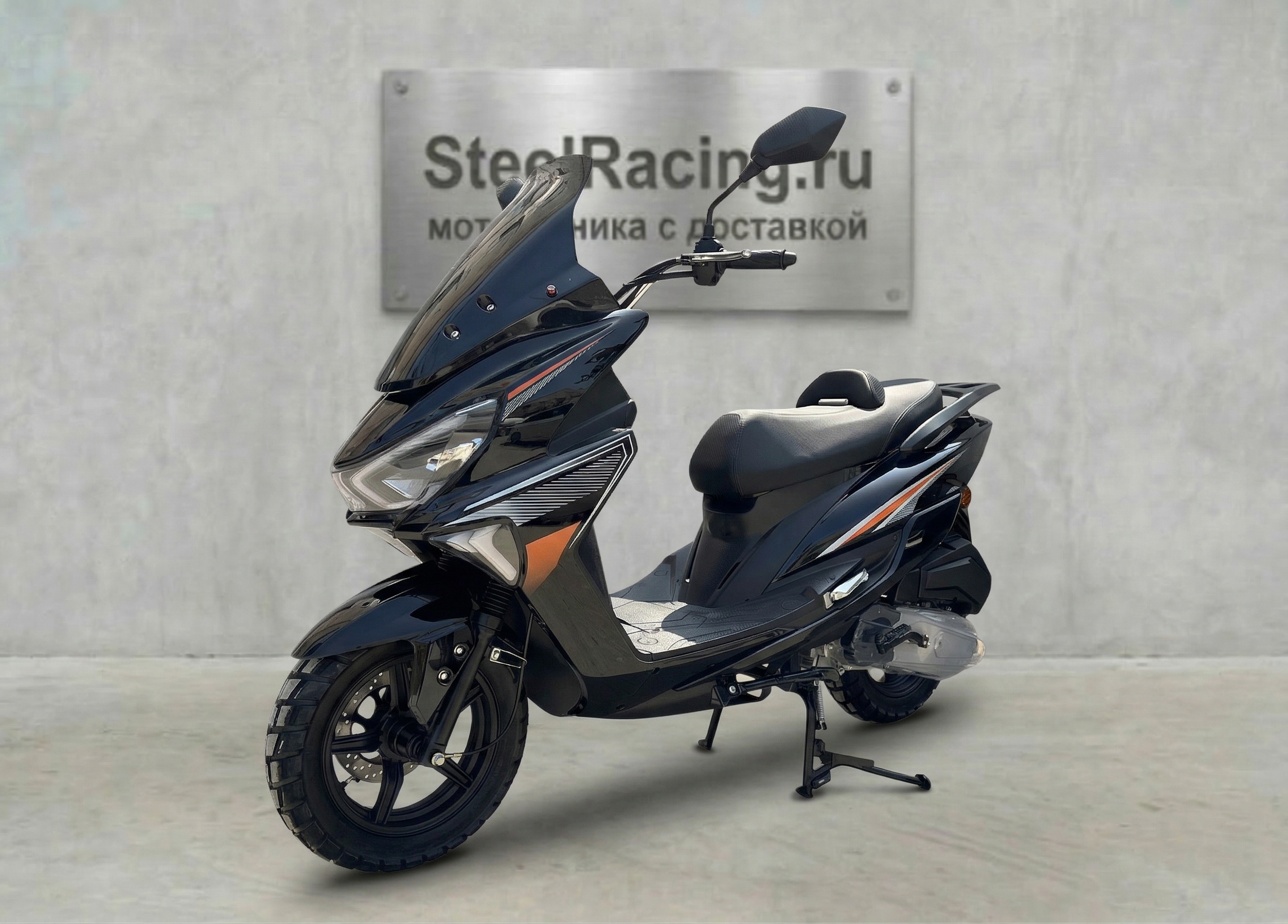По технике: 4-тактный двигатель объёмом 150 см³ с карбюратором и воздушным охлаждением (принудительный обдув), запуск — электро- и кик-стартер. Трансмиссия — вариатор, что удобно в городе без переключения передач. Указана маркировка двигателя 139QMB при мощности 10 л.с. и максимальной скорости до 100 км/ч.