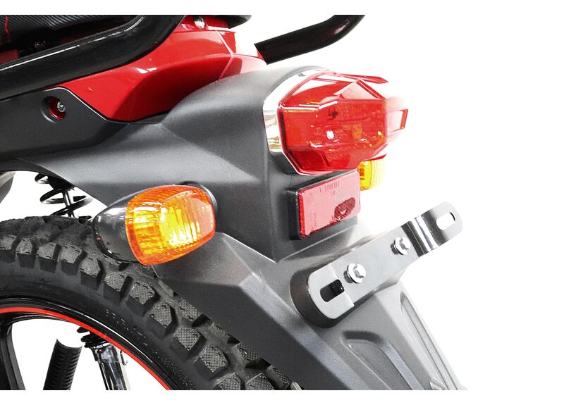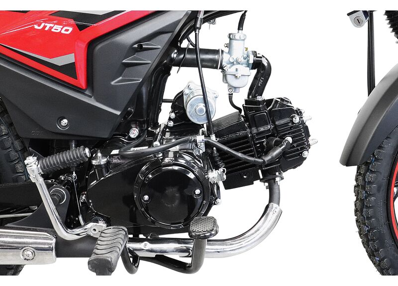 Двигатель 125 см³, одноцилиндровый, 4-тактный, с максимальной мощностью 5.6 kW при 7500 об/мин. Для удобства в быту предусмотрены сразу два способа запуска: электростартер и кик-стартер — можно завести мопед даже при слабом аккумуляторе.