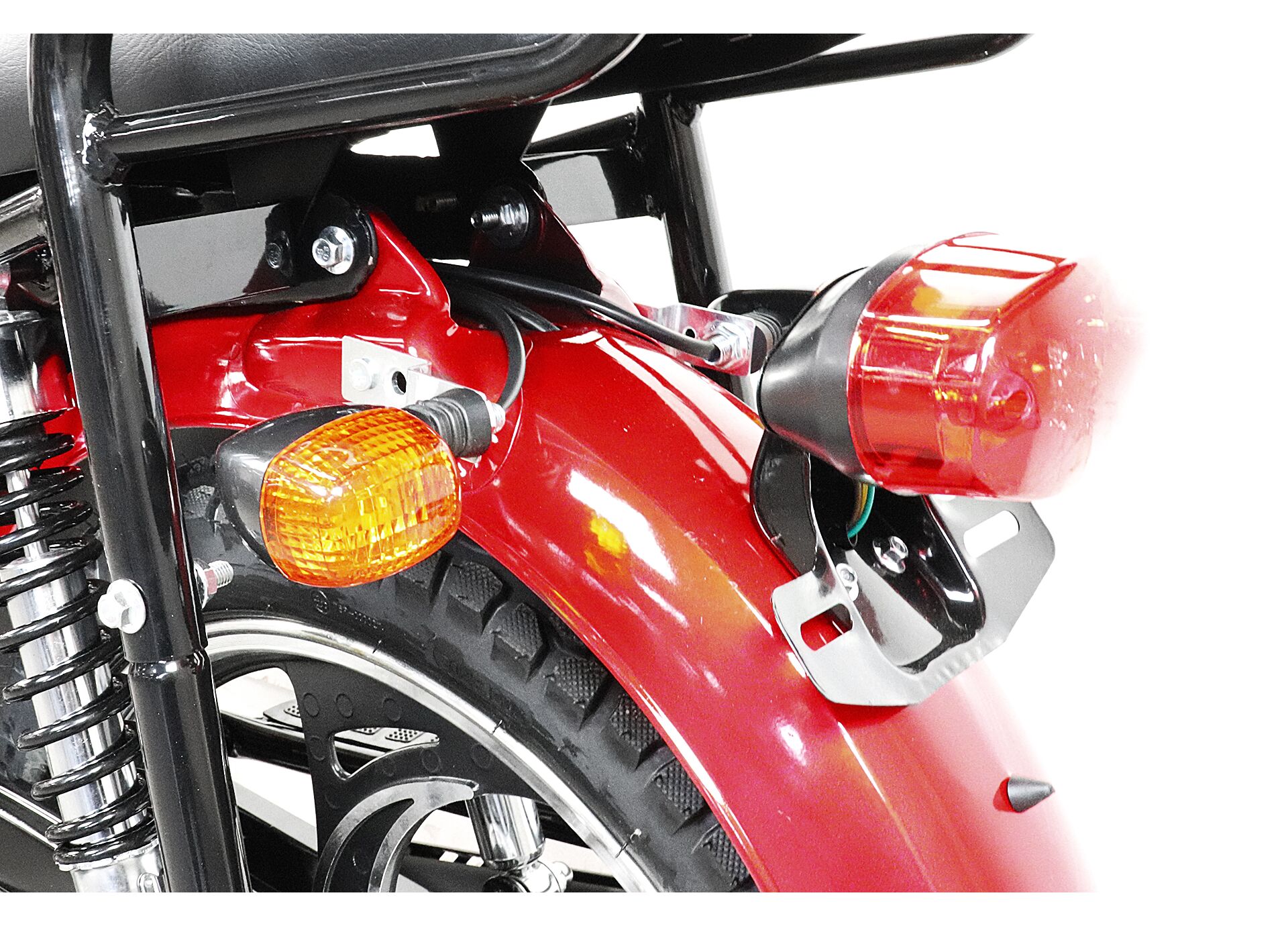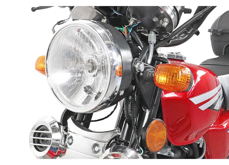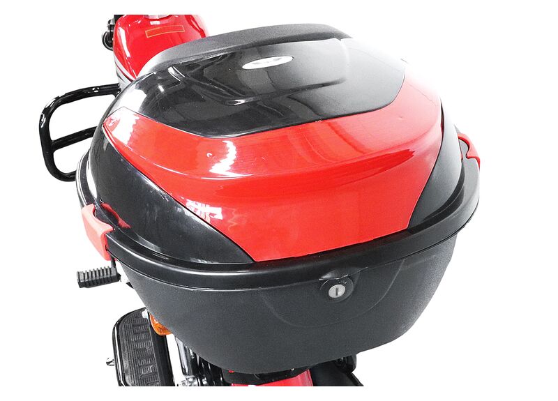 Для практичной эксплуатации предусмотрены литые крашеные алюминиевые диски (колёса 17R), барабанные тормоза спереди и сзади, электромеханическая приборная панель. В комплекте есть сигнализация с автозапуском и кофр — в нём можно хранить шлем или перевозить вещи. Также установлены прорезиненные поворотники.