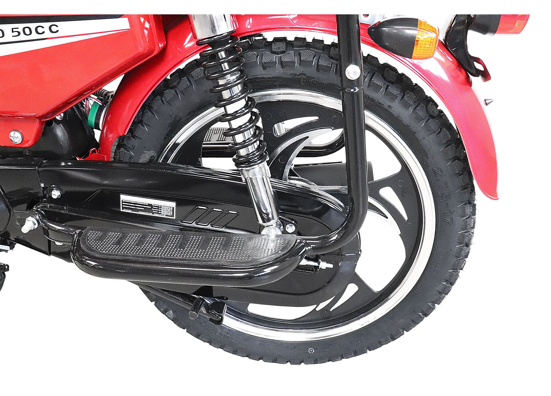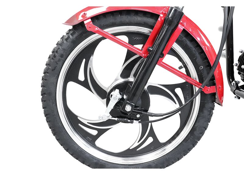 Мопед KT50 Alpha Люкс (форсированный) рассчитан на повседневные поездки: он подходит для города и для выездов на просёлок за счёт внедорожных шин, телескопической передней вилки и двух задних гидравлических амортизаторов.