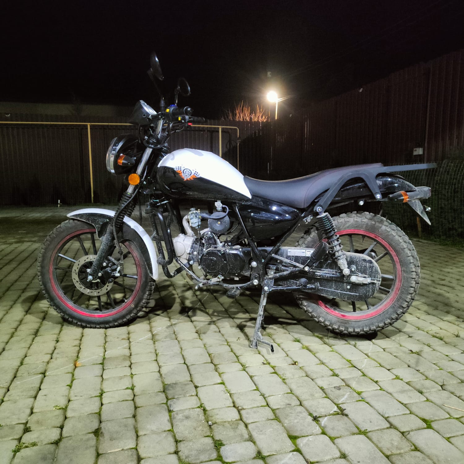 Рама и маятник выполнены из стали, что обеспечивает прочность и долговечность конструкции. Передняя подвеска представлена телескопической вилкой, а задняя – маятником с двумя амортизаторами, что способствует плавному ходу и устойчивости на дороге. Тормозная система включает в себя передний дисковый гидравлический тормоз с 1-поршневым суппортом и задний барабанный гидравлический тормоз, что гарантирует эффективное торможение в любых ситуациях.