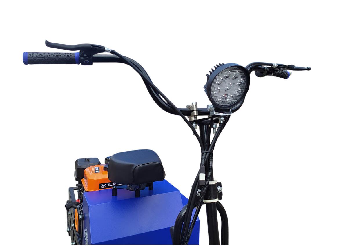 Мотобуксировщик компактный с рычажным модулем Лидер-Дельта-3 CVTL — версия с вариаторной трансмиссией TAV2-40 и установленной коробкой реверса (задний ход). Модель оснащена фарой и рассчитана на эксплуатацию с передним рычажным модулем.