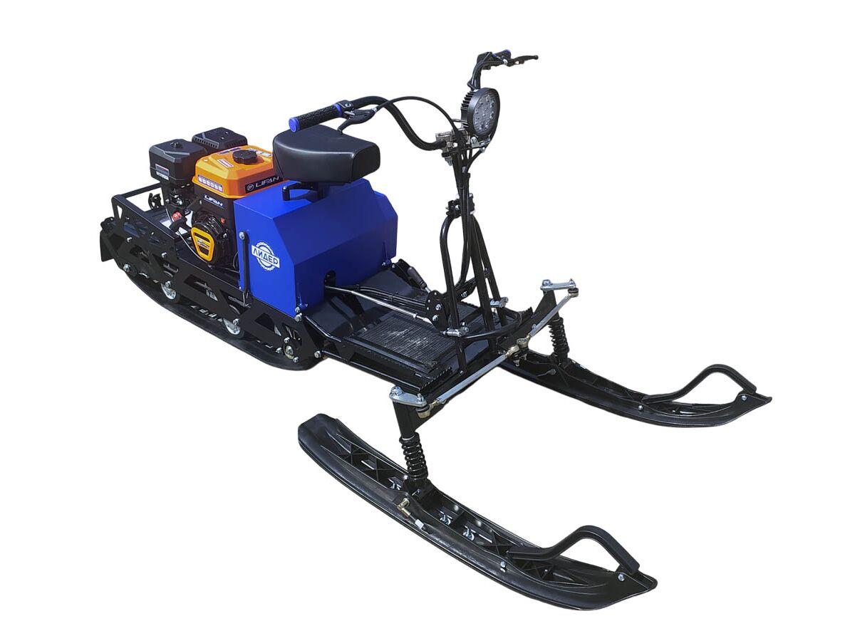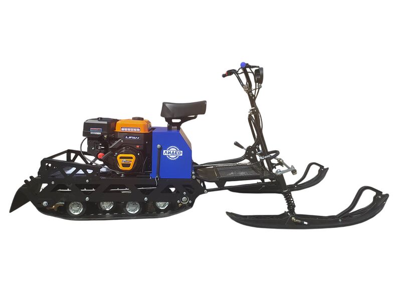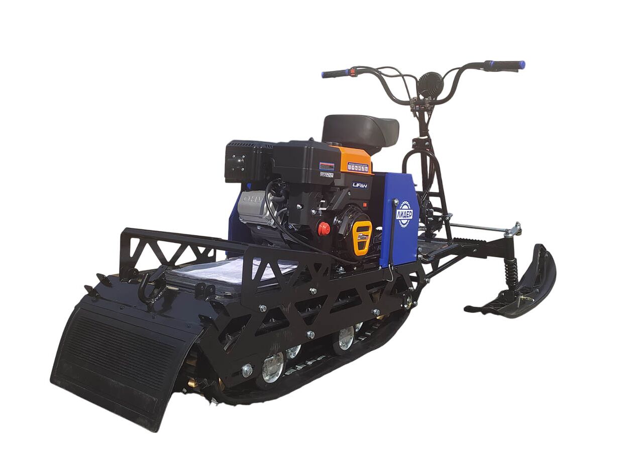 Мотобуксировщик Лидер-Дельта-3 в комплектации с лыжным модулем — компактная модель, выполненная в формате «мини-снегохода»: водитель размещается спереди на сиденье и управляет рулем и двумя лыжами.