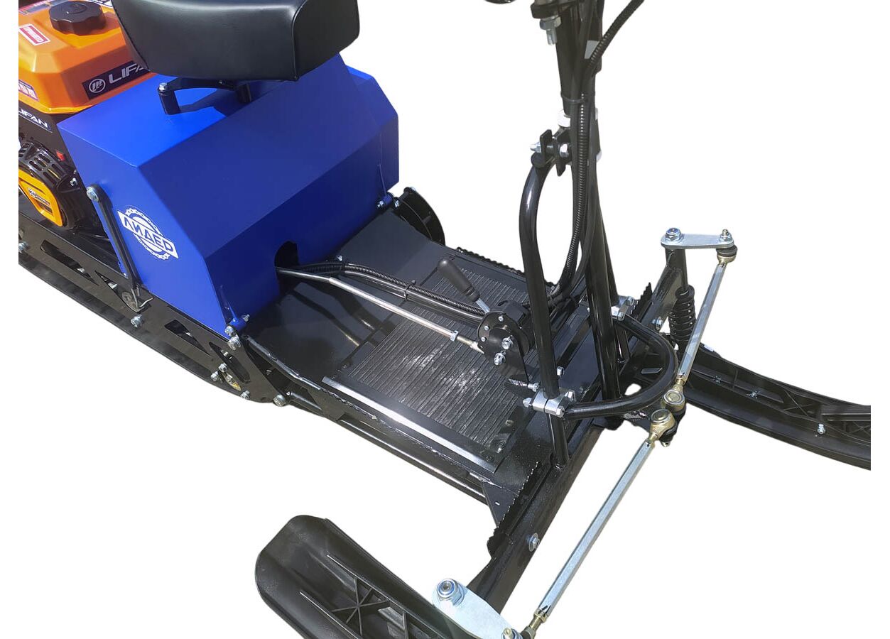 - КУПИТЕ С ДОСТАВКОЙ!Компактный мотобуксировщик Лидер-Дельта-3 с лыжным модулем для комфортного управления: сиденье и руль спереди, две лыжи для маневренности.