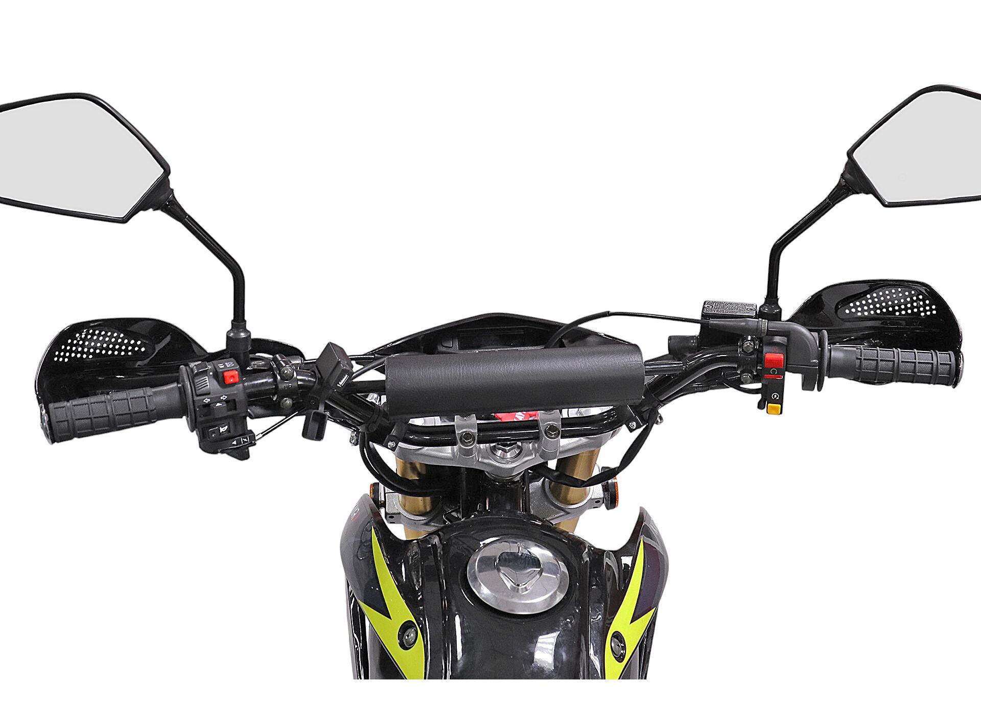 В основе — 4‑тактный двигатель Zongshen CB250 (серия 172FMM) объёмом 250 см³ с воздушным охлаждением. Карбюратор NIBBI PZ 30 — понятный вариант для настройки под условия и стиль езды. Трансмиссия со схемой 1‑N‑2‑3‑4‑5 помогает выбрать передачу под тягу на бездорожье или более ровный темп на укатанных участках.