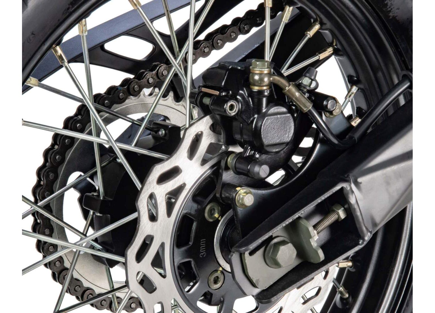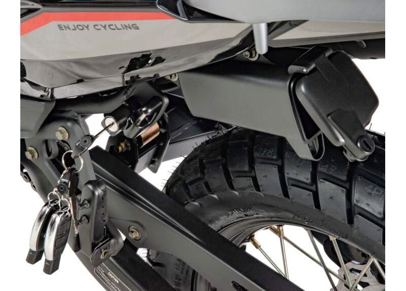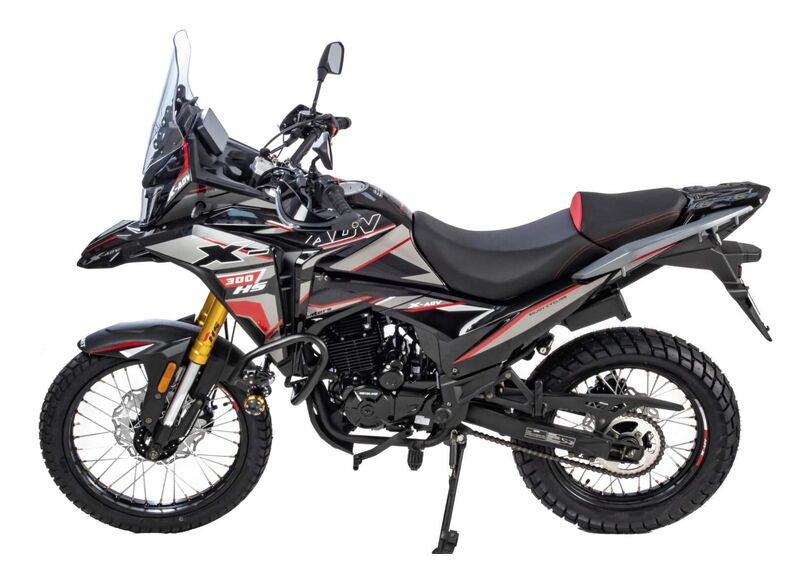 Для неровных дорог полезны дорожный просвет 300 мм и подвеска с выносными регулировками компрессии и отскока — можно подстроить поведение под грунт или асфальт. Колеса спицованные; в характеристиках указан размер шин 90/90-19 и 130/80-17 (в описании также встречается 21/18), поэтому при выборе ориентируйтесь на нужный вам диаметр и текущую комплектацию.