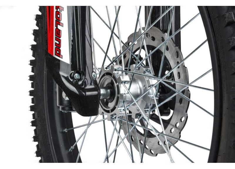 - Колесная формула 21/18: Классический размер кроссовых колес для эффективного преодоления препятствий.
