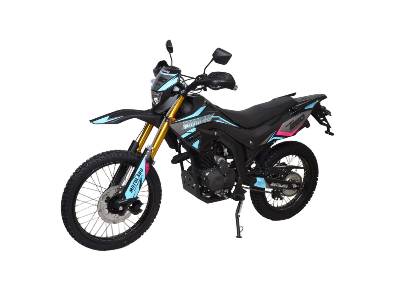 Motoland 250 ENDURO BLAZER (XF250-A) — мотоцикл класса эндуро с рабочим объёмом 250 см³ и мощностью 16 л.с. Наличие ПТС, а также поворотников и заднего стоп-сигнала делает модель практичным выбором не только для грунта, но и для повседневных поездок, где важна дорожная оснащённость.
