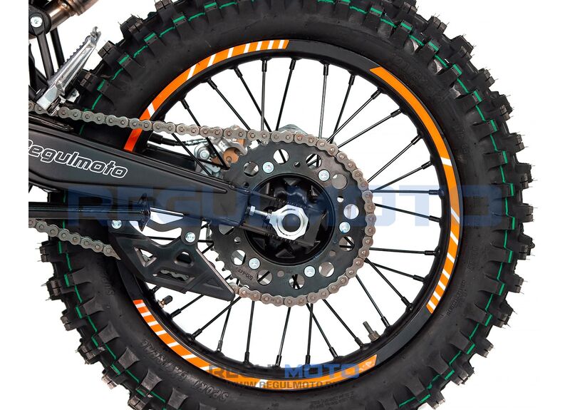 Regulmoto CR-X PRO — эндуро-мотоцикл с ПТС, рассчитанный на маршруты, где асфальт быстро заканчивается: грунтовки, колеи и смешанные дороги. Класс эндуро и колёса 21/18 (перед 90/90, зад 120/90) помогают увереннее проходить неровности и держать направление на рыхлых покрытиях.