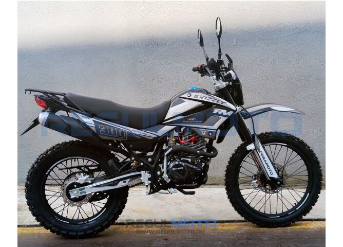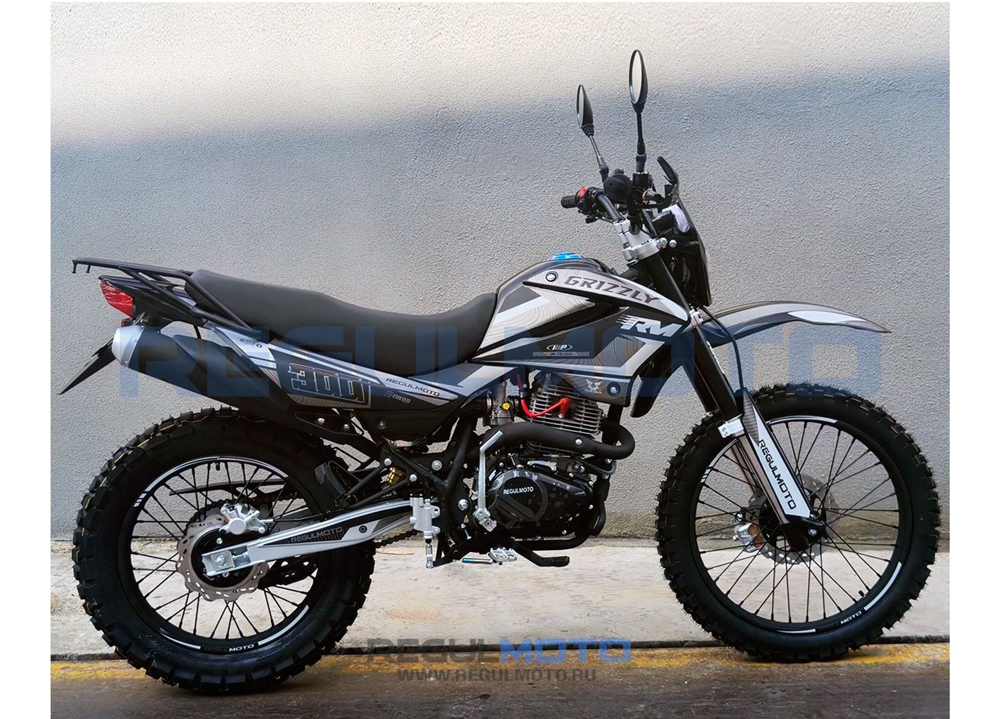Regulmoto Grizzly относится к классу эндуро и рассчитан на езду по пересечённой местности и грунтовым дорогам. Наличие ПТС удобно, если вы планируете оформить мотоцикл и использовать его не только на внедорожных маршрутах.