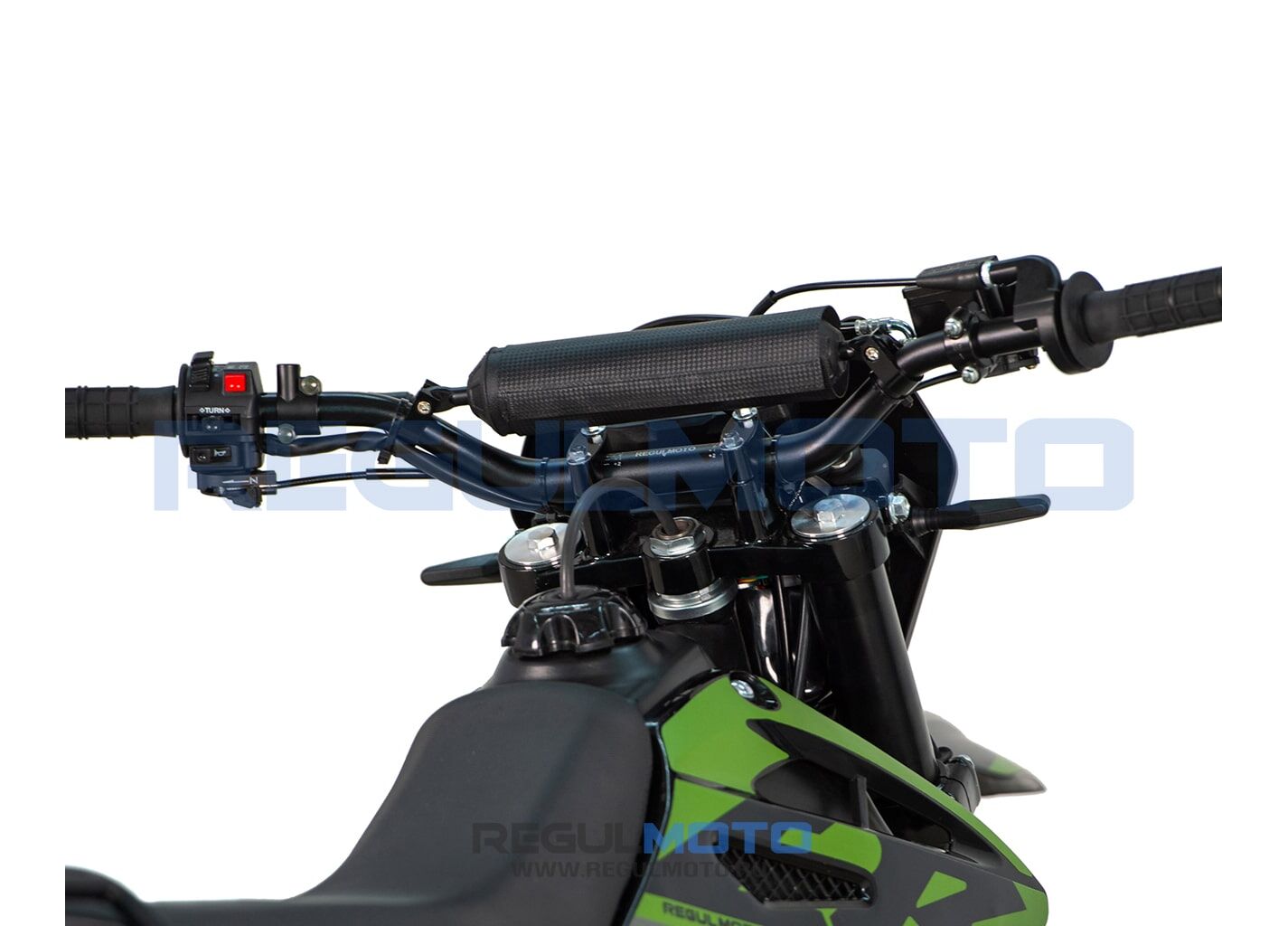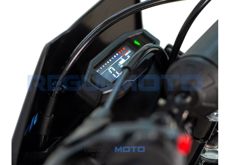 Regulmoto Sport-003 Z относится к классу эндуро и рассчитан на бездорожье и смешанные маршруты. Колёсная пара 21/18 (переднее 90/100/21, заднее 120/90/18) помогает увереннее проходить неровности и грунтовые участки, сохраняя устойчивость на скорости.