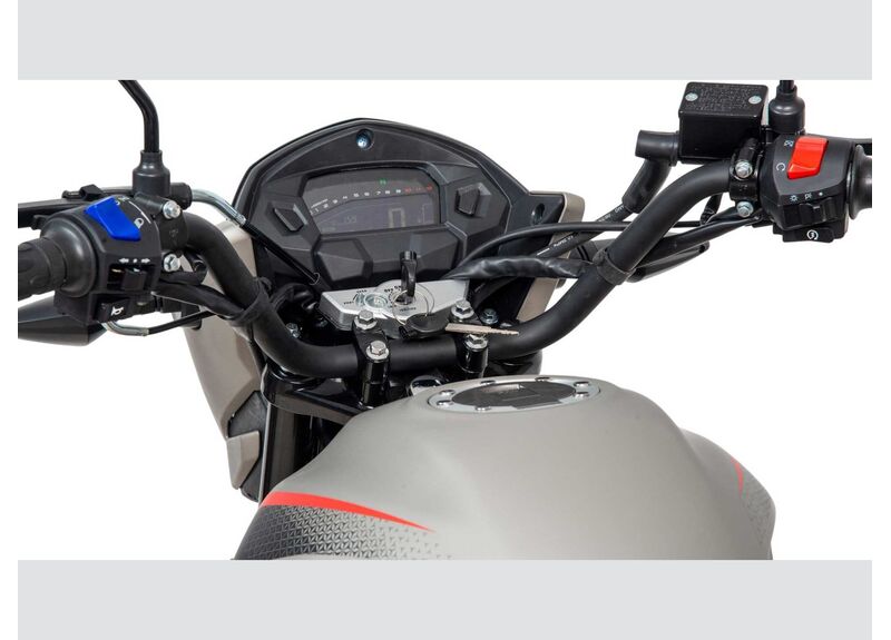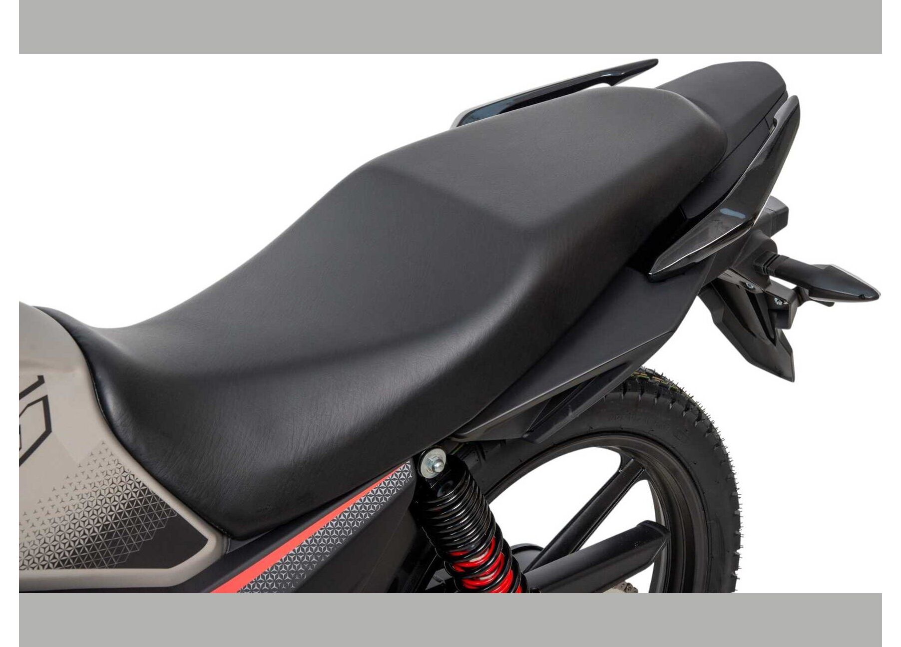 Ходовая часть ориентирована на дорожную эксплуатацию: передняя телескопическая вилка и два задних амортизатора. Колёса 18/18 с литыми дисками — практичный вариант для повседневного использования. Тормоза: передний дисковый и задний барабанный — при выборе важно учитывать, что основное торможение обычно берёт на себя передний контур.