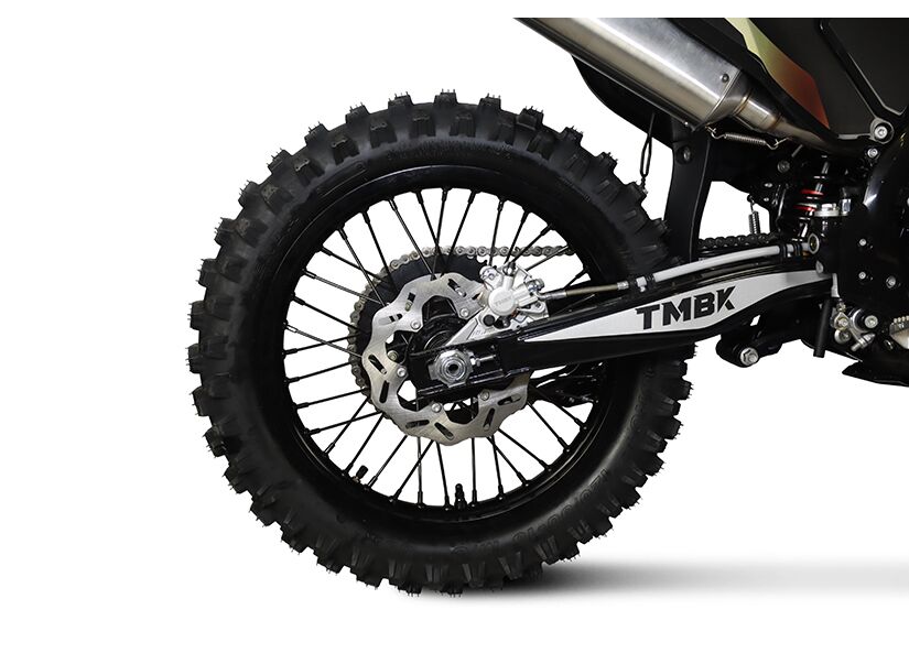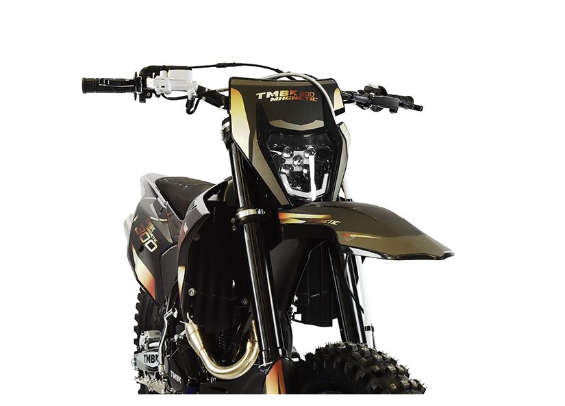 TMBK MAGNETIC 300 (PR300) подойдёт тем, кому нужен эндуро для разнообразных маршрутов — от неровных грунтовок до более быстрых прохватов. Универсальный характер даёт связка тяговитого мотора и внедорожной ходовой: колёса 21/18 с покрышками 90/90-21 и 120/90-18 рассчитаны на уверенное прохождение неровностей.