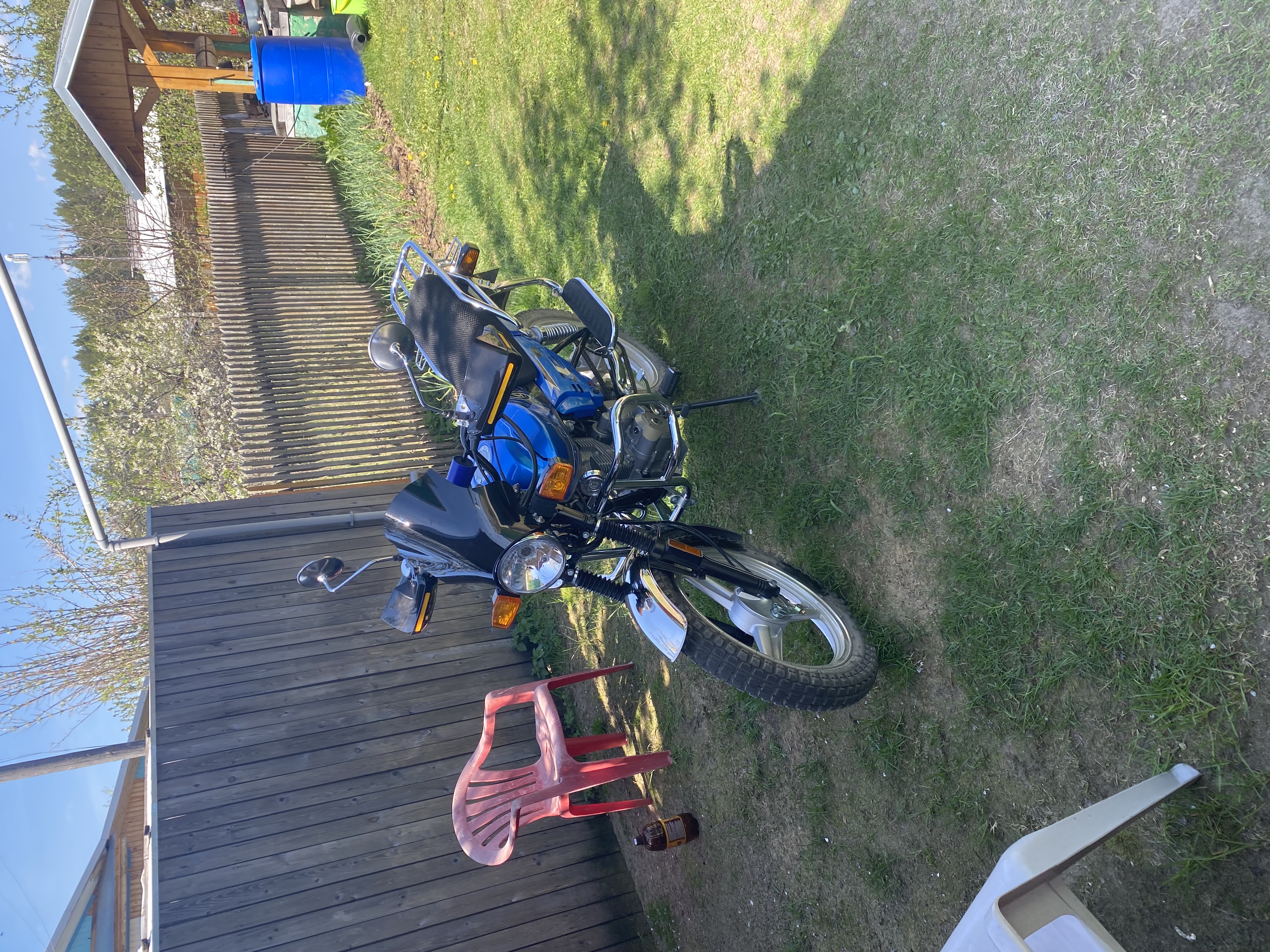 Доброго времени суток , всем ! Начну с того , что покупка мотоцикла в данном магазине , не вызвала никаких затруднений или проблем . Прислали счёт на оплату , оплатил и стал ждать . Транспортная компания тянула с доставкой , но зато цена на доставку у них ниже , чем у других . Так как я работаю в другом городе и кроме меня , мотоцикл забрать было некому , задержка нервировала , но по итогу всё срослось - забрал . Если вам не особо это важно , везите любой транспортной , которую предложат в магазине . К магазину у меня претензий никаких нет , по почте прислали ЭПТС и ДКП , всё без проблем . Мотоцикл поставил на учёт , без вопросов. Теперь по мотоциклу , покупал его для деревни , для коротких поездок в лес , на природу , и так покататься , вспомнить молодость . Техникой доволен , мотора мне хватает , даже с запасом . Но вот на расстояние 130 км , мне уже он не понравился ( это я его на учёт, гонял в соседний район ) . Устала спина жутко уже на обратной дороге , плюс мотор 200 слабоват , постоянно под полной нагрузкой . Короче говоря , для деревни и для коротких поездок , мот отлично подходит ( имхо ) . Я ему даже ведущую звезду поставил на зуб больше , и без вопросов , хватает и тяги и скорости . Выбирал его , чисто по описанию в интернете и смотрел пару роликов на ютубе . ДВС 163 FML , с нижним расположением распредвала , это очень понравилось , хоть система и старая и мотор ( говорят не едет на верхах ) , мне как раз это и нужно . Короткие поездки по грунтовым и лесным дорогам . И клапана регулировать легко . Нет цепи грм , что лично меня тоже радует , чем проще , тем надежнее в эксплуатации. Эксплуатирую мотоцикл с весны 23 года , проехал не много в районе 1000 км . Менял масло один раз , проехав 100 км . Масло планирую менять раз в 1000 км , входит 1л . Заливаю 20w50 , это гуще , чем рекомендует производитель , но я езжу только летом и не по асфальту , так что считаю в самый раз такая вязкость , заливаю минералку . Пробег за сезон небольшой , так что смену в 1000 км считаю оправданной , по времени это два сезона +/- , а масло все равно окисляется в движке . Да и не напряжно купить воздушный фильтр и 1 литр масла. Я изначально хотел купить , Шинерей Интрудер 200 , но обратил внимание , что у него нет защитного кожуха цепи , и выбрал из-за этого Хадар . Но как оказалось , этот кожух мне в моих условиях эксплуатации и без надобности , туда набивает грязи , стоит только проехать по лужам или после дождя по мокрому песку . Так что я кожух , сразу снял , юзаю мот без него . Снял багажник , который на руле , снял дуги руля , и с заду снял тоже , кое какие железяки .Снял цетральную подножку , цеплялась в лесу и в колеях часто. Пользуюсь боковой . На Алике заказал , 3D сетку на сидуху , обтекатель на фару , защита рук от веток и ветра . Колеса на 18 , оба одинакового размера , так что покрышки можно перекинуть , если будет необходимость в процессе износа . Аккум стоит слабенький , надо будет купить по мощнее . Как то так . В общем покупкой я доволен , что хотел то и получил , езжу , слёзы счастья из глаз , от встречного ветра . Мужики кто думает брать или нет , бери и катайтесь , для деревни , лес , грибы- ягоды самое оно . Кто не хочет с мотом заморачиваться , ну типа : учёт и водительского нет , категории А , берите мопед , тоже для деревенских покатушек подходит . Всем Добра и Удачи !