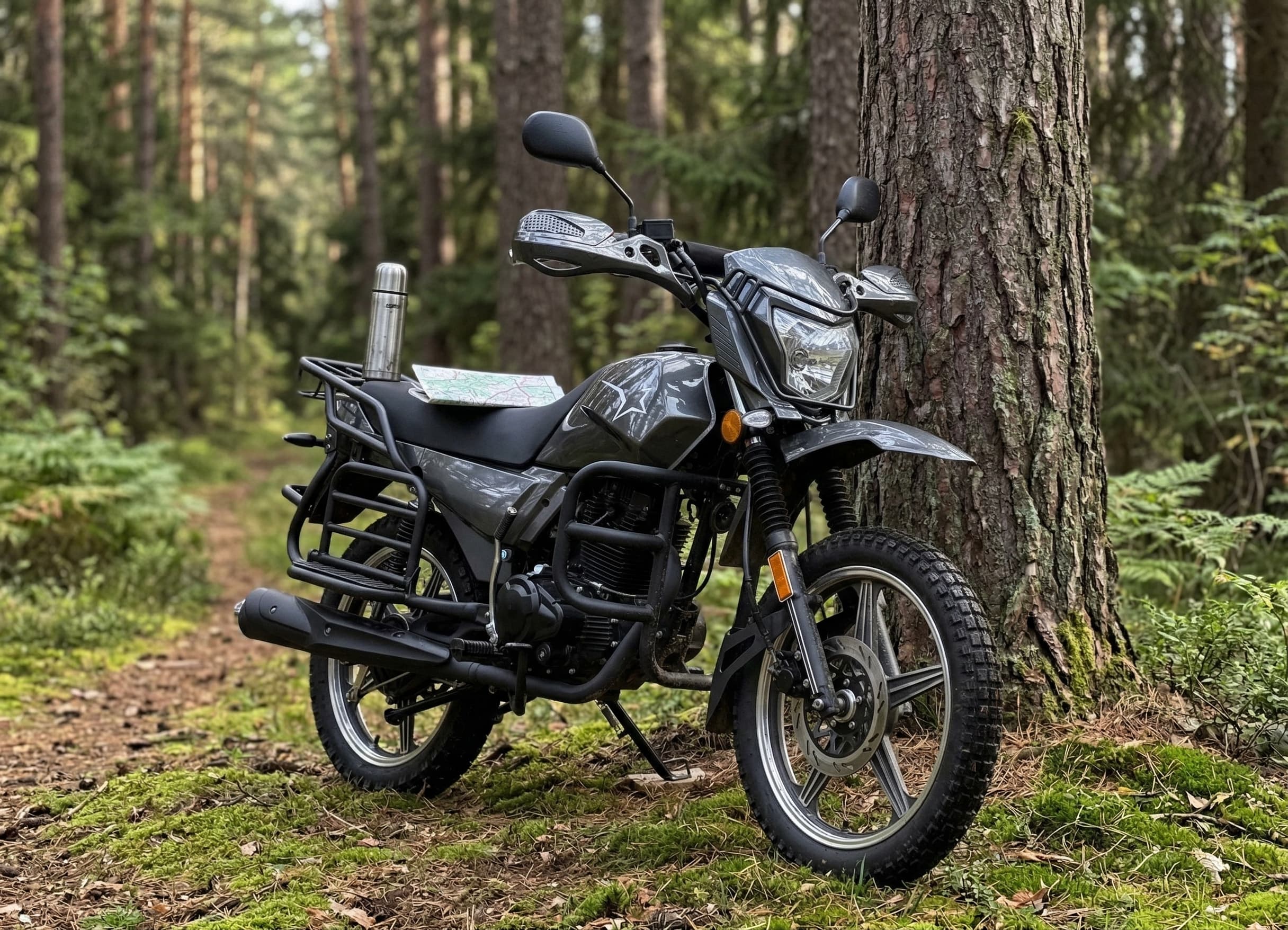 - Подойдет для езды по асфальтированным дорогам и бездорожью. В подтверждение внедорожной направленности говорит большой ход подвески переднего колеса. Амортизация осуществляется за счет телескопической вилки. Задняя ось подрессорена при помощи маятника с 2 пружинными амортизаторами, которые имеют прогрессивную навивку, то есть переменный шаг витков. Предусмотрен преднатяг, который осуществляется поворотом стакана со ступеньками в нижней части каждого амортизатора.