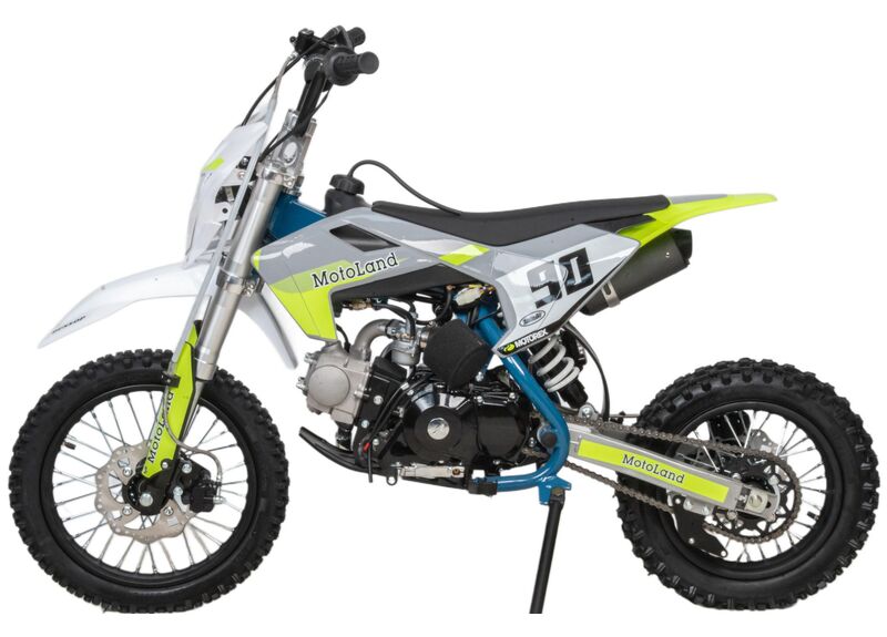- КУПИТЕ С ДОСТАВКОЙ!Motoland TCX125 E — обновлённый питбайк с колёсами 14/12, двигателем 125 см³ и электростартером/кикстартером. Оснащён фарой, весит 70 кг и рассчитан на нагрузку до 120 кг.