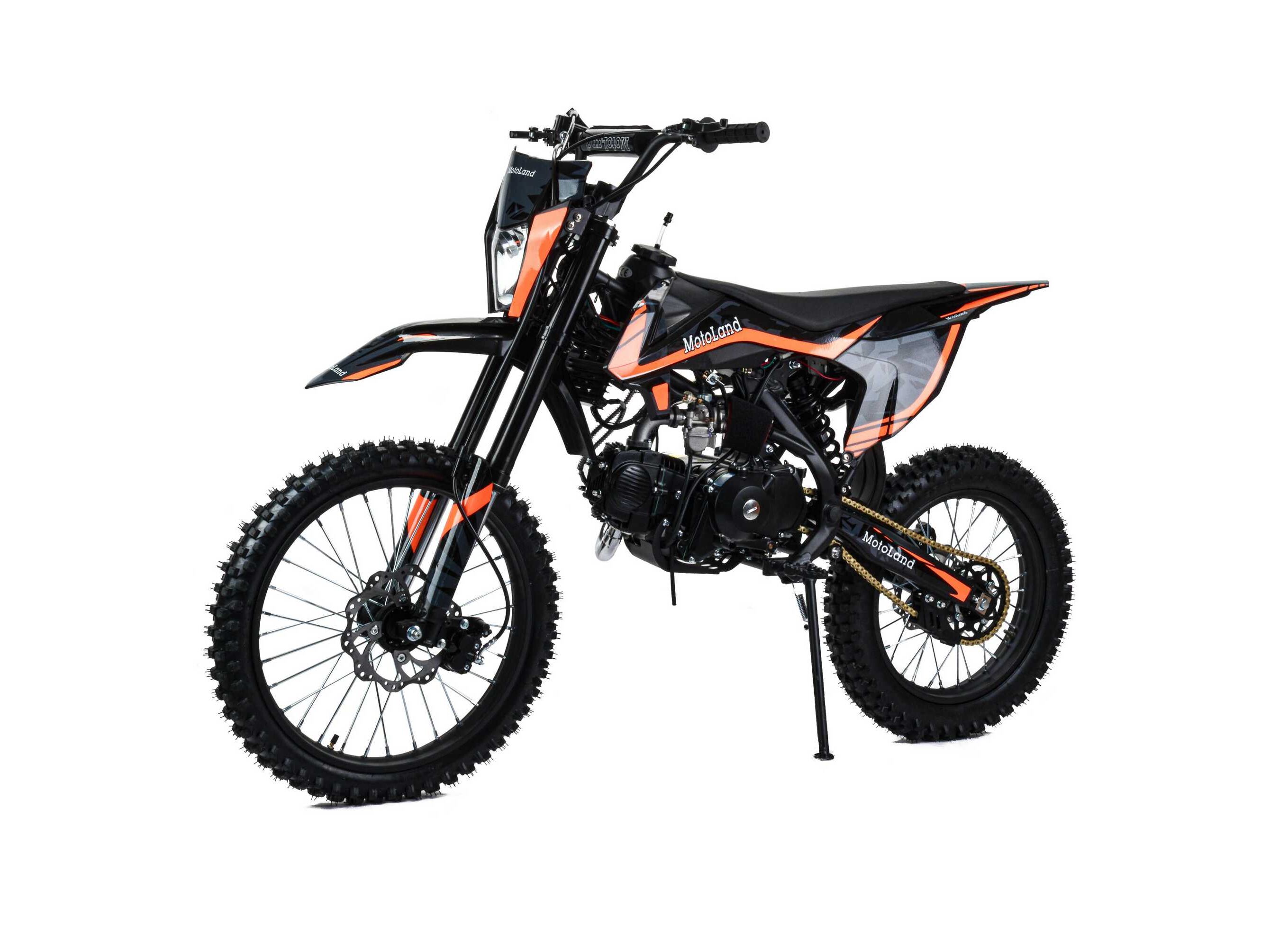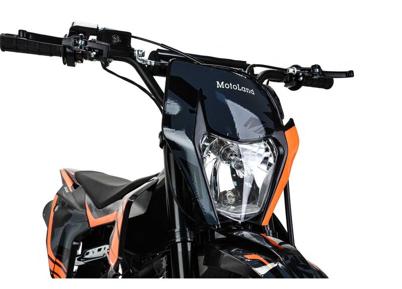 - КУПИТЕ С ДОСТАВКОЙ!Питбайк Motoland 125 GF125 E 19/16 — лёгкая внедорожная модель для грунта и тренировок: вес 85 кг, колёса 19/16 и дорожный просвет 340 мм.