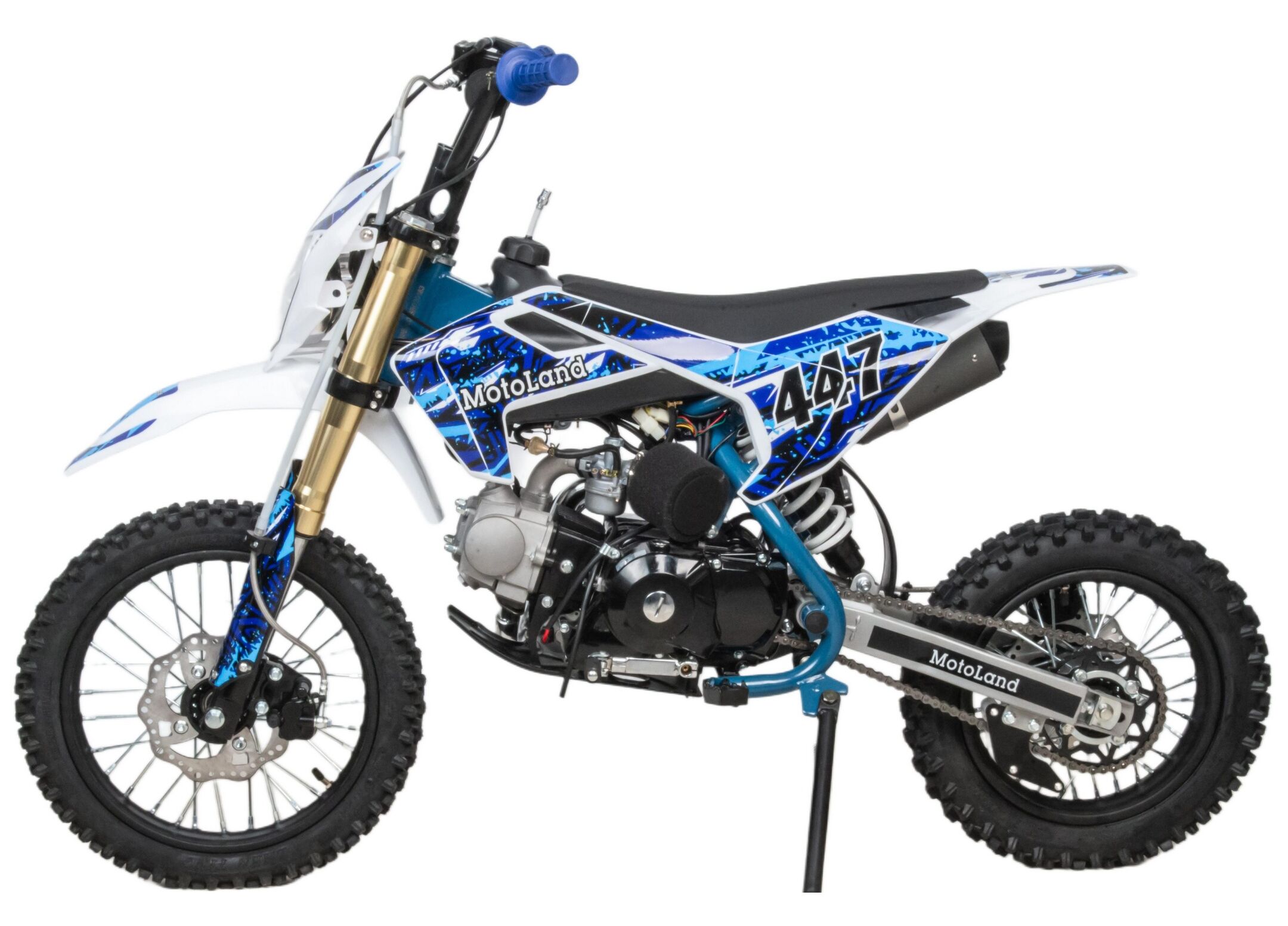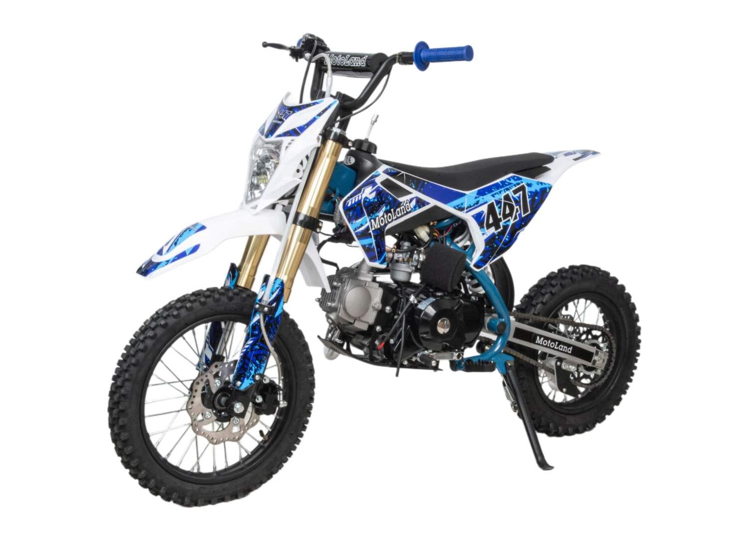 - КУПИТЕ С ДОСТАВКОЙ!Motoland TCX125 E — питбайк с колёсами 14/12 и фарой, рассчитанный на грунтовые дороги и бездорожье.