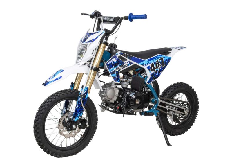 Питбайк Motoland TCX125 E (14/12) с фарой создан для активных покатушек по грунту и пересечённой местности. Модель проста в управлении и подойдёт как для новичков, так и для любителей мотокросса.