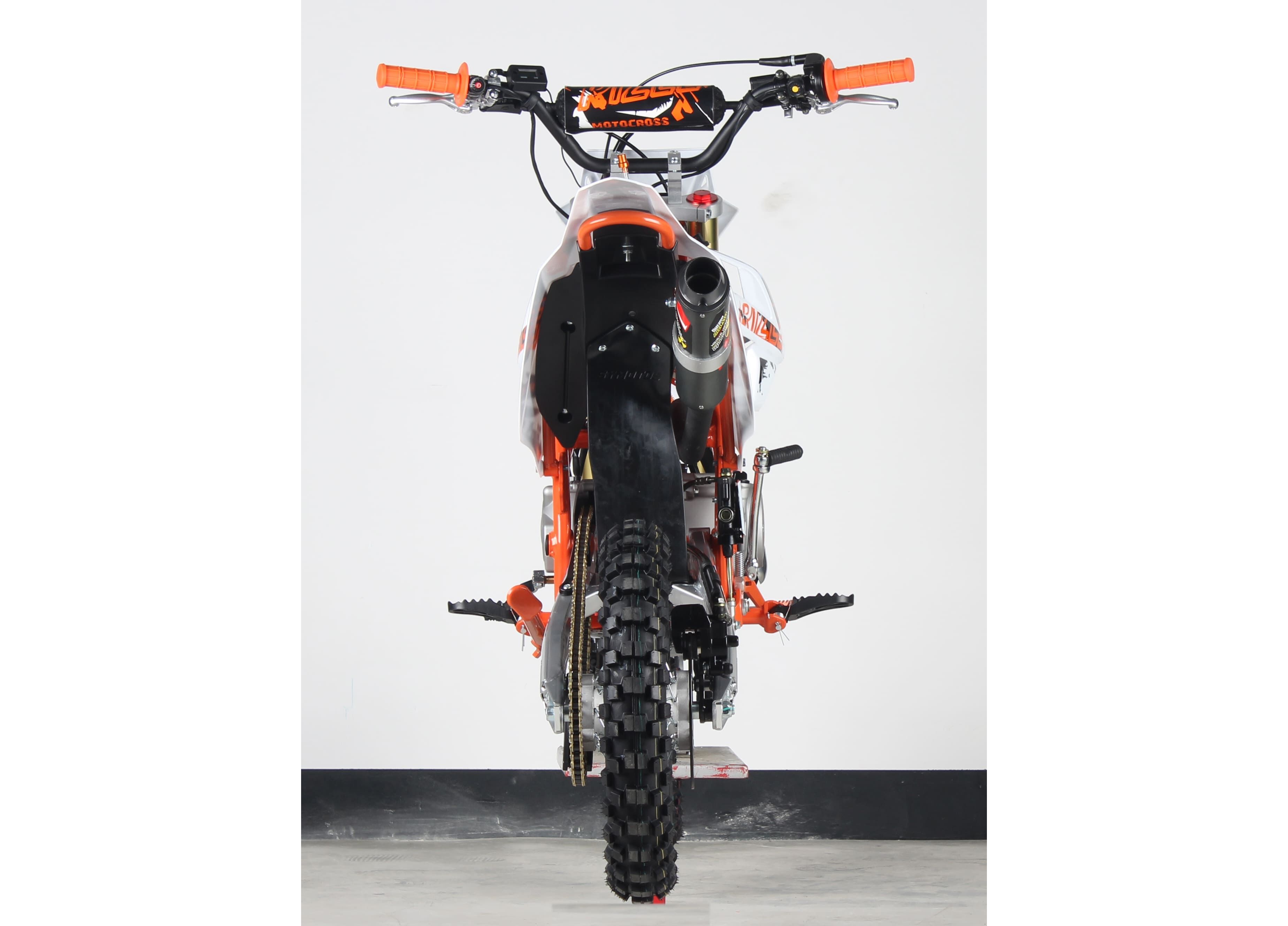 Из оснащения заявлены фара, стоп-сигнал, приборная панель и буксаторы. Масса — 87 кг. Питбайк поставляется без ПТС, то есть рассчитан на эксплуатацию вне дорог общего пользования.