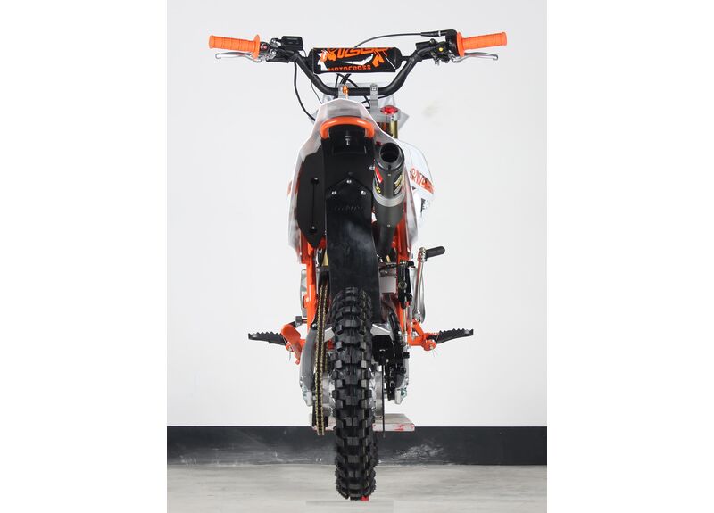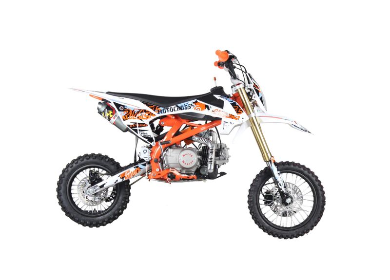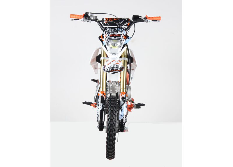 Чтобы запуск был проще в повседневном использовании, предусмотрены сразу два варианта старта — кикстартер и электростартер. Подача топлива карбюраторная, охлаждение воздушное, зажигание CDI — простая и понятная конфигурация для питбайка.