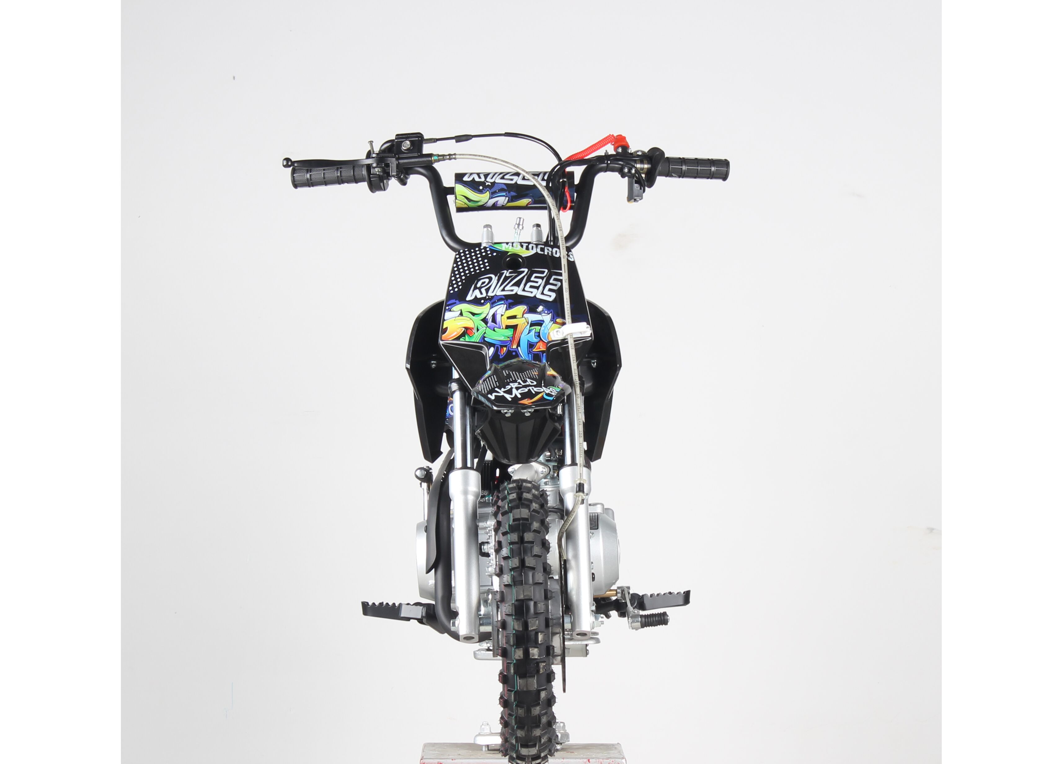 Чтобы быстрее запускать питбайк в разных условиях, предусмотрены сразу две системы старта: кикстартер и электростартер. Подача топлива — карбюратор, зажигание CDI, охлаждение воздушное — конструкция без лишней сложности для регулярных покатушек.