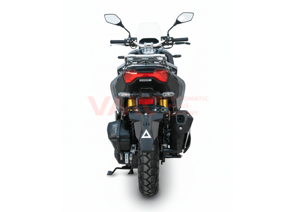 Модель оснащена современной тормозной системой: передний и задний дисковые тормоза (вентилируемые диски D240 и D215) и Combi Brake (CBS) для более уверенного замедления.