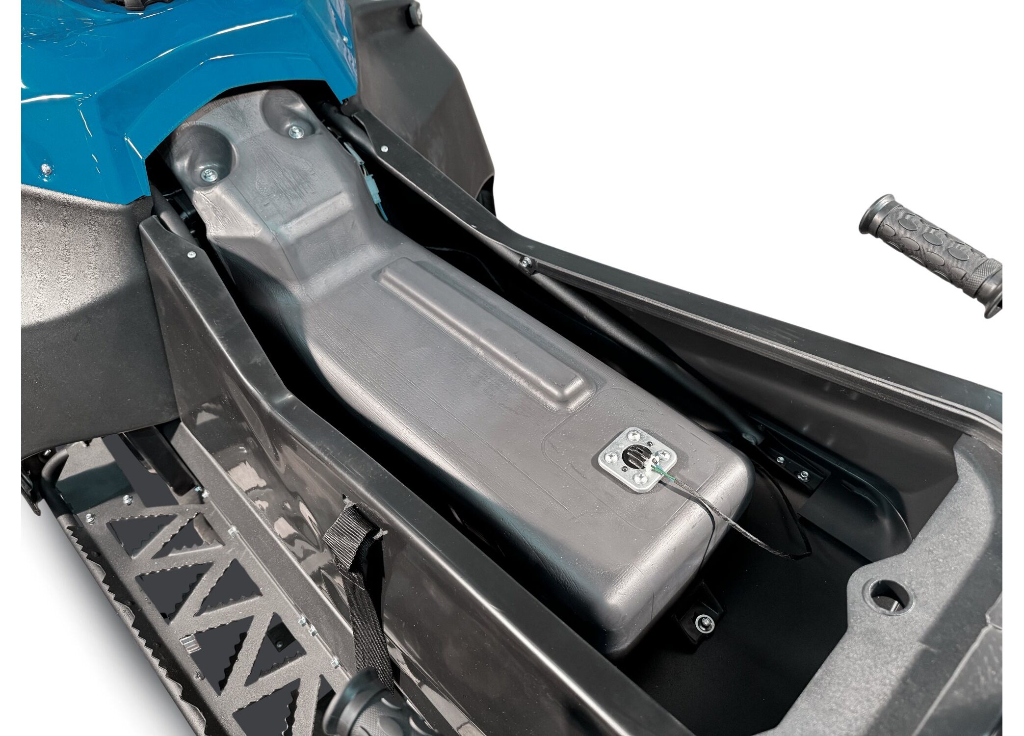 Для ежедневной эксплуатации предусмотрены полезные опции: двухпозиционный подогрев ручек руля и курка газа, электронная панель приборов, розетка для зарядки устройств, гидравлический дисковой тормоз со стояночным тормозом и система аварийного глушения двигателя. Запуск — электростартер + ручной, чтобы можно было завести снегоход и при разряженном аккумуляторе.