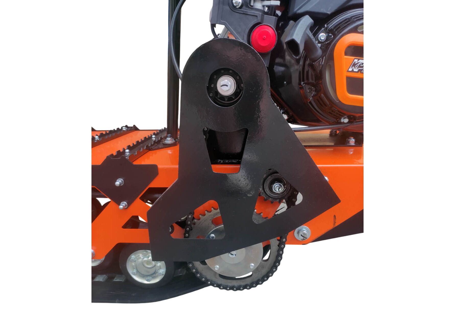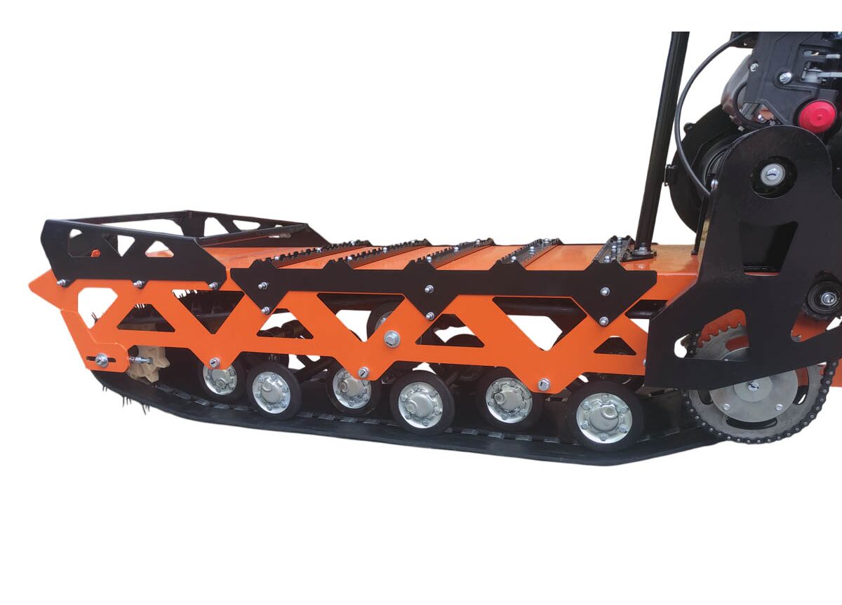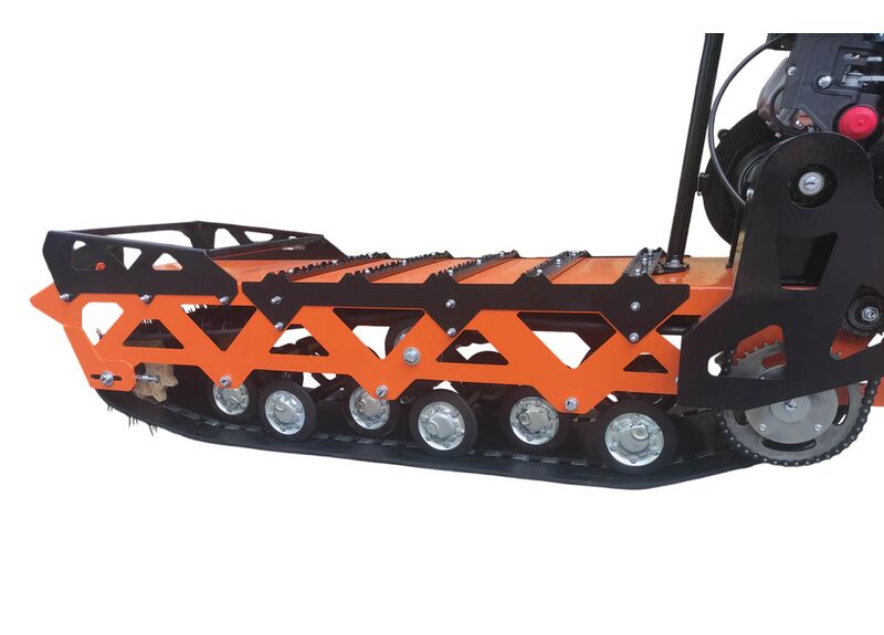 В модели применяется гусеница производства НПО «Композит» от снегохода Буран: ширина 380 мм и длина 2878 мм. Длинная и узкая база рассчитана на удобное маневрирование.