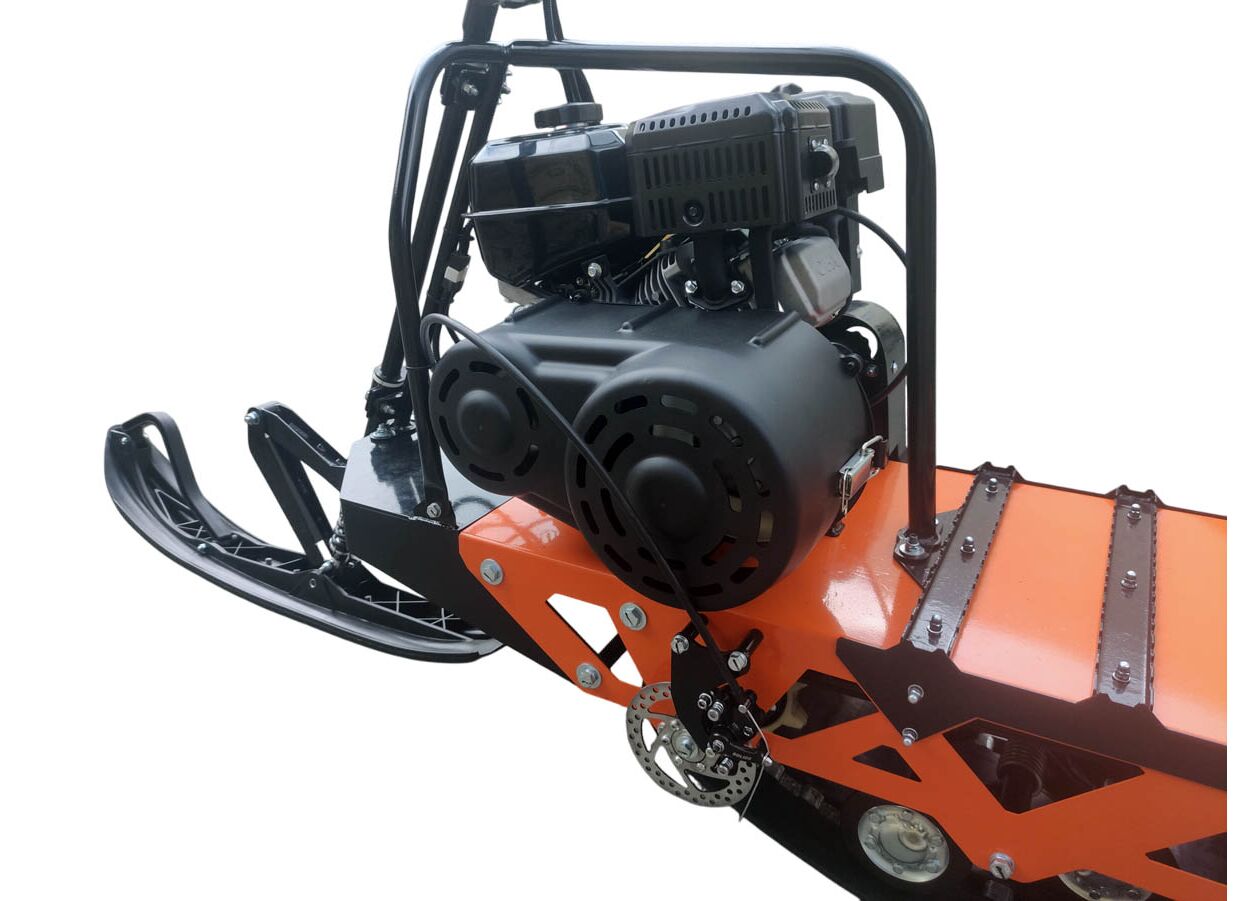 Установлен двигатель LIFAN KP270 мощностью 10 лс (с катушкой освещения). В качестве трансмиссии используется вариатор TAV-2-40, хорошо зарекомендовавший себя на мотобуксировщиках.