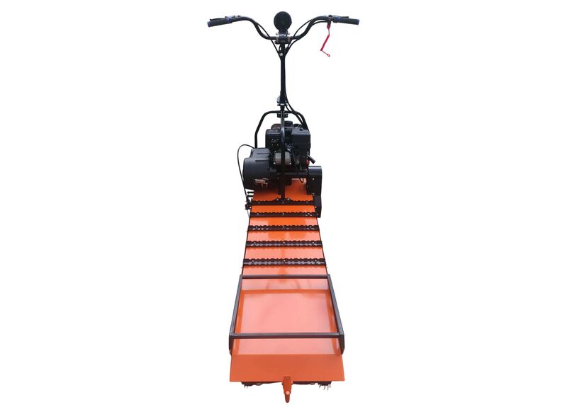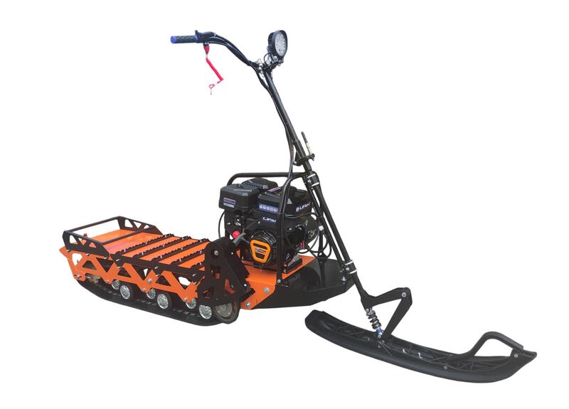 Отличительная особенность модели — передняя лыжа и стойка руля. Водитель стоит на платформе и управляет снегокатом поворотом руля и лыжи.