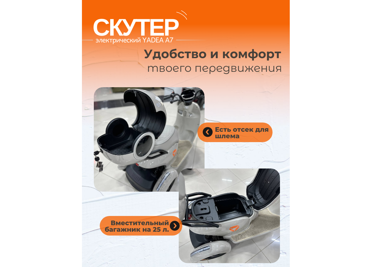 - КУПИТЕ С ДОСТАВКОЙ!YADEA A7 — трехколесный электрический скутер для спокойных городских поездок и уверенной устойчивости.
