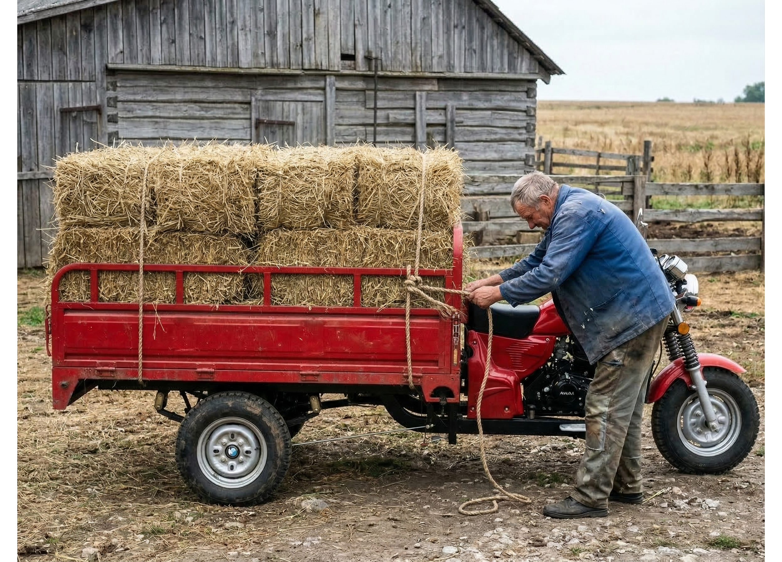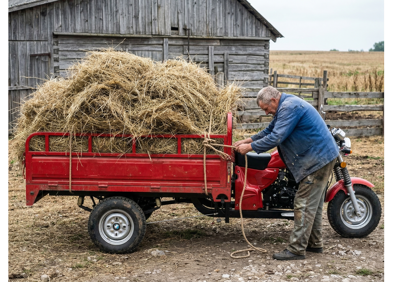 Подвеска кузова рессорно-пружинная. Китайцы для такого типа подвески указывают грузоподъемность до 750 килограмм, однако по ПТС этот трицикл имеет грузоподъемность около 300 килограммов.
