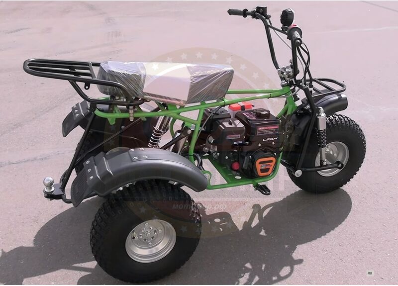 - КУПИТЕ С ДОСТАВКОЙ!Трицикл с двигателем Lifan 230 куб. см, мощностью 8 л.с. Имеет автоматическое сцепление, переднюю и заднюю подвески, дисковые тормоза. Максимальная скорость — 50 км/ч, грузоподъемность — 150 кг. Запуск ручной, топливный бак на 3,6 литра. Подходит для перевозки грузов и передвижения по бездорожью.