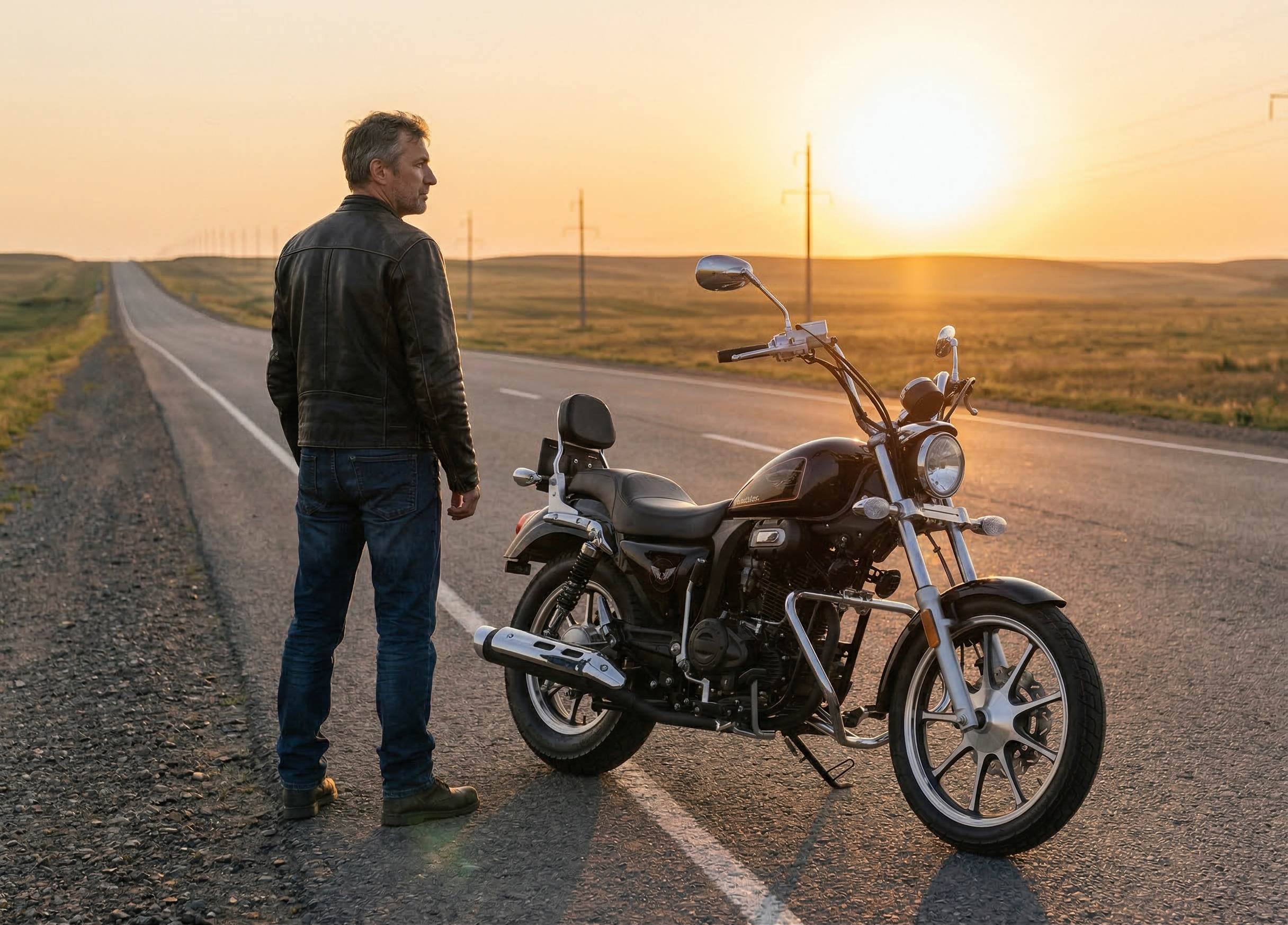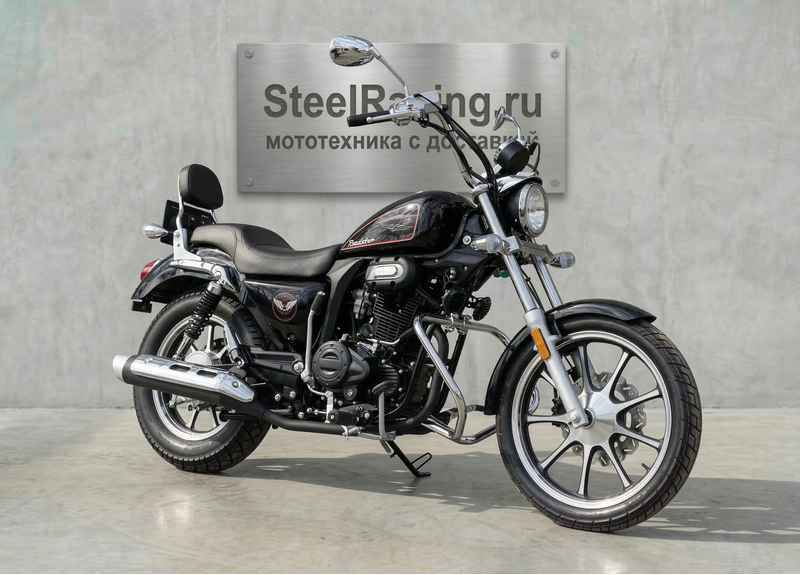 По тормозам и колесам: передний дисковый тормоз и задний барабанный — понятная связка для дорожной эксплуатации. Размеры шин 90/90-18 спереди и 130/90-15 сзади задают типичную для «круизера» геометрию с более широким задним колесом. Мотоцикл поставляется с ПТС.