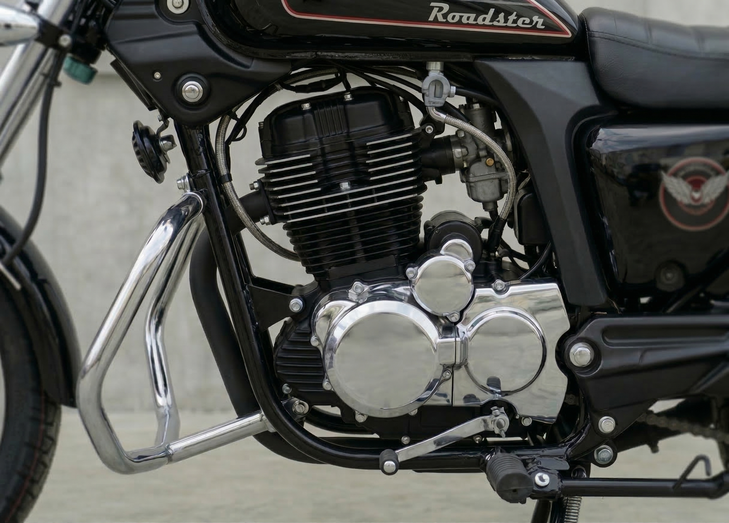 ZONGSHEN ROADSTER RA1 подходит тем, кто ищет спокойный дорожный мотоцикл в стиле круизер (чоппер) для езды по асфальту. Комфорт в длительных поездках дает «байкерская» посадка и вынесенные вперед подножки — ноги не поджаты, как на классике.